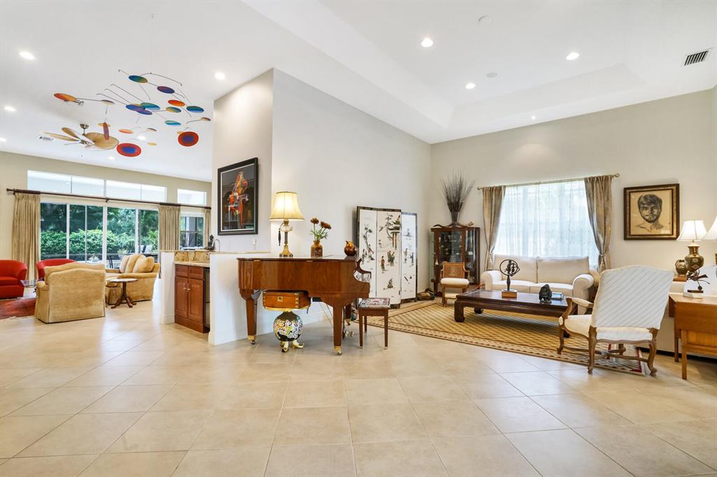 With almost 3300 square feet of air conditioned living space, this beautifully upgraded 4BR/3.5BA Home is spacious, luxuriously appointed and offers immense privacy. Located in Ibis's Sand Cay enclave, this home features soaring ceilings and unique features, some of which are not often found at this price point. Leaded double glass Impact-rated front doors welcome you. There is an elegant wet bar (that isn't sunken) and custom built-ins that add functionality and drama to the Study (or 4th BR), family room, and master closets. Accordian hurricane shutters and replaced appliances (Master BR AC, water heater, washing machine) are wonderful updrades. This private outdoor space features lush landscaping (maintained by the HOA), a screened lanai, cabana bath all leading to the pool and spa.
