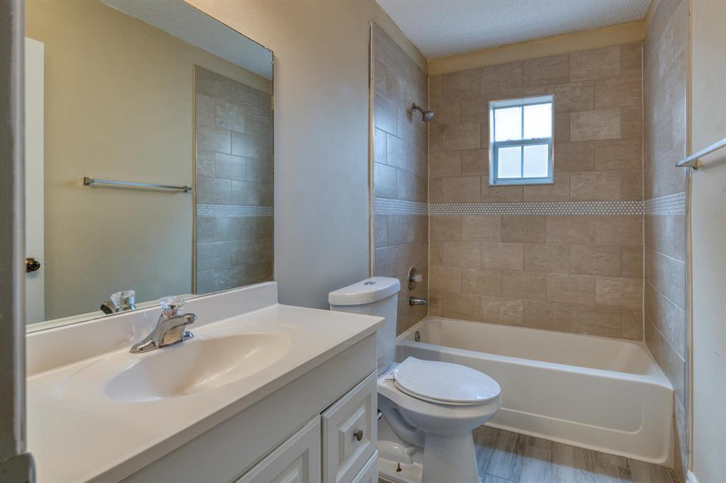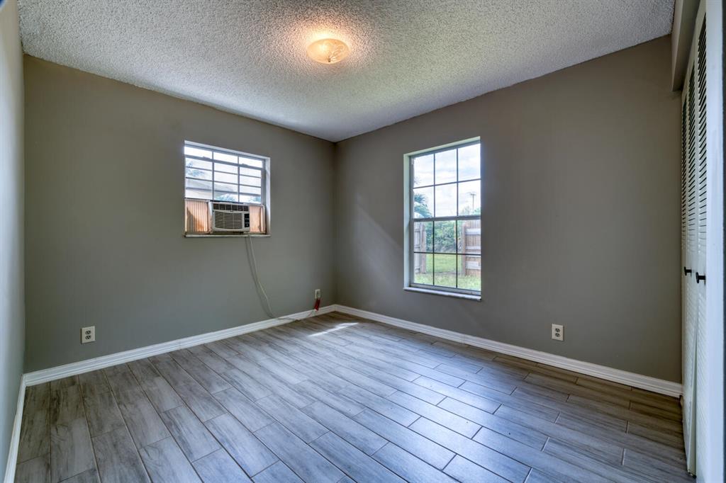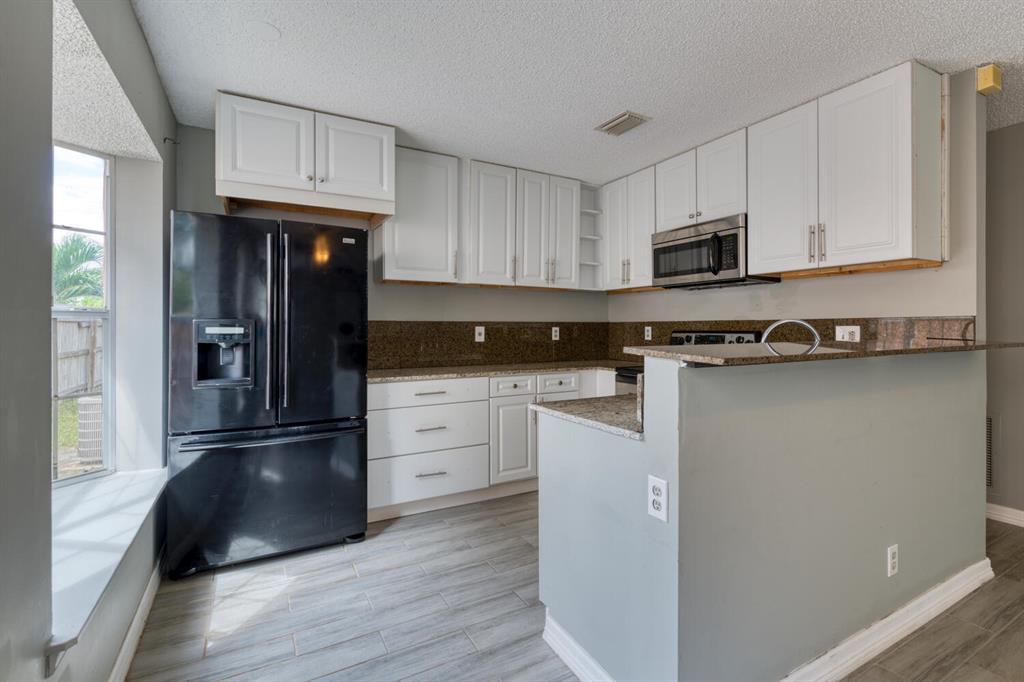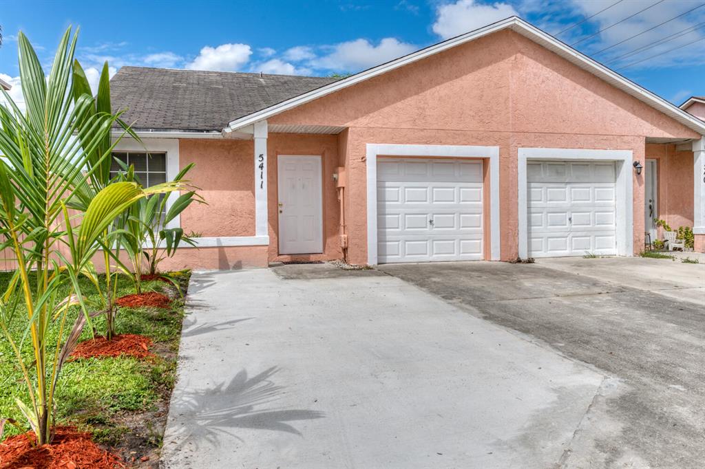 Great 2 bedroom/2 bath single-story CBS stucco townhouse with attached garage! New updated grey plank tile flooring throughout! Updated kitchen with newer white cabinets, granite countertops, and stainless appliances. Updated bathrooms. Freshly painted inside and out! Fenced in back yard. View of the large West Palm Beach canal in the back of the home! Extra wide driveway to park two vehicles, plus garage parking. Community pool. Must see!
