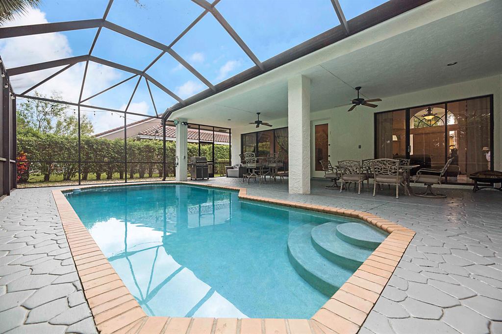 Drive down beautiful tree-lined streets to get to the home of your dreams! Immaculate & move-in ready w/brand new roof, freshly painted inside & out plus updated kitchen & bathrooms. Screened pool w/stamped concrete deck. Saturnia-look tile in all living areas, high ceilings + lots of natural light enhance the beauty of this charming home. If you like to cook - this kitchen is for you! Lots of cabinets, counter space, stainless steel appliances including a double oven, 2 pantries w/pullouts PLUS a butler pantry. The spacious breakfast nook is encircled with a triple picture window overlooking peaceful green space. Elegant primary suite w/sitting area has new carpet, walk-in closet + bypass closet. The luxurious bathroom has double vanities, linen closet, separate shower + soaking tub.