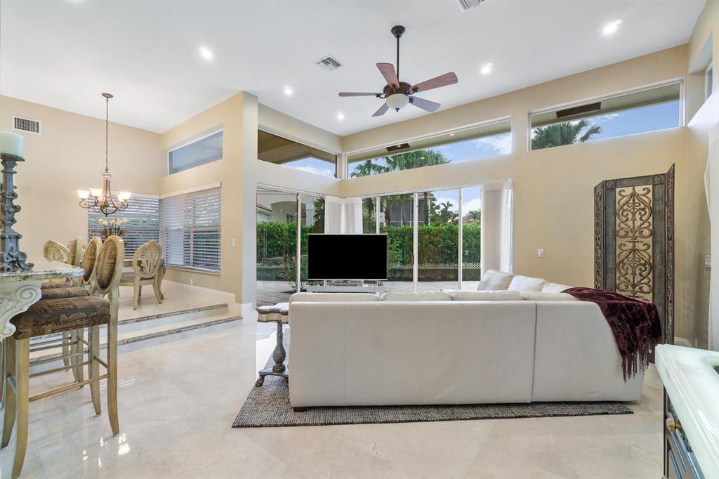 As soon a you pull into the circular drive you will notice grandeur of this estate home. Entering the front doors you are greeted with beautiful marble floors, high ceilings and an open living space. The home offers 3 bedrooms, an executive office and a bonus room that would make a great place for home theater, play room or private gym. The kitchen is a cook's delight with high end appliances, gas cooktop, double ovens and loads of storage. The master suite is secluded and makes for a quiet retreat with a view of the pool and lake. Out back you will find a grand pool area and huge yard that is the perfect place to entertaining family or friends. don't miss the opportunity to live in one of the finest homes in Broken Sound. Membership required