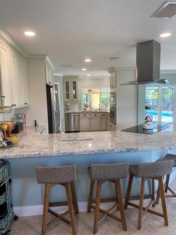Indoor & Outdoor living at it best on a large corner lot. This home features an open concept, completely renovated kitchen, new GE 2019 appliances, induction cooktop, granite countertops and soft close kitchen cabinets. The family room has impact sliders out to a screened in pool. Newly remodeled bathrooms with spa showerheads. Tile throughout the living areas. Living room features oversized impact doors that slide open all the way. Large Master bedroom walk-in closet & with ensuite bathroom. Plantation shutters in windows of main living rooms. Outdoors enjoy lush landscaped fenced yard including underground pet safe fence, outdoor shower, custom fire pit patio with electric access/lights, well water irrigation system, screen pool and bar pass through to the kitchen Many more upgrades