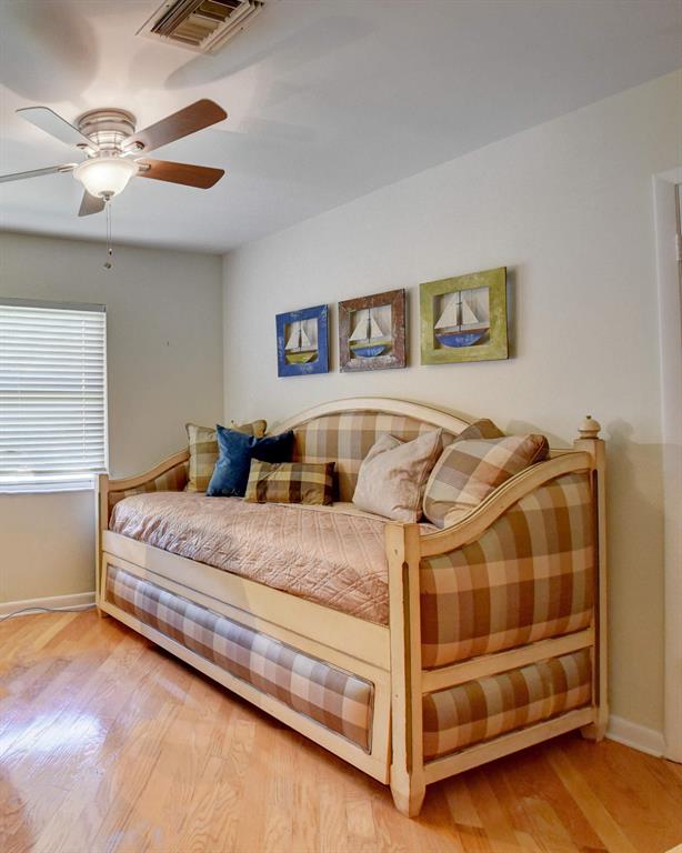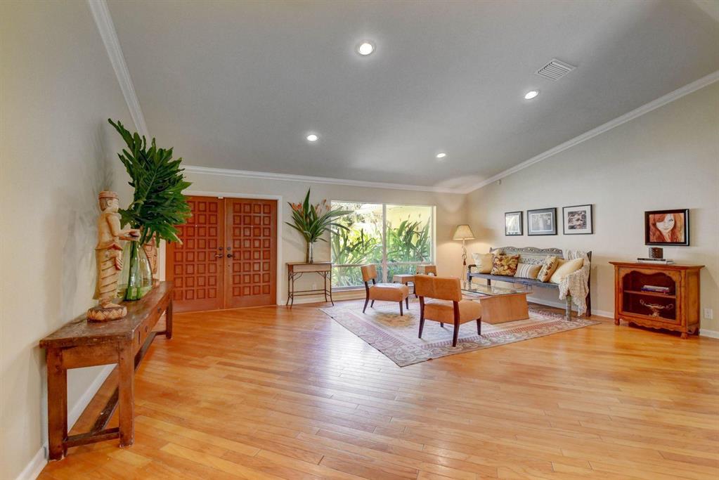 Spacious 4-bedroom home located on .28-acre, cul-de-sac lot. Offering impressive cathedral ceilings with recessed lighting, crown molding, and great windows with tropical garden view in the main living area. Additional flexible living space adjacent to the kitchen great for many options - perfect home office or home-schooling set up. Updated kitchen and baths, wood and tile flooring throughout - no carpet! Big closets in all bedrooms. The 42' long covered porch offers amazing outdoor living space - plenty of room for a pool.