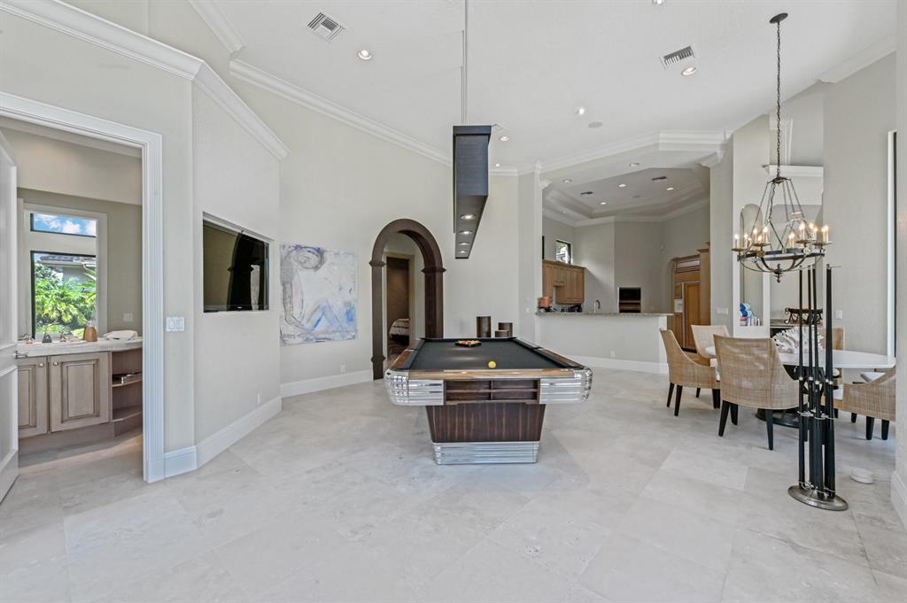 This custom one story home sits on a private lot with superb long lake views. A luxurious estate home with 5 ensuite bedrooms plus office and 2 half baths . Fully furnished and ready to move in. Hurricane windows and doors throughout ,Natural gas for cooking , hot water and pool heater. Gorgeous Saturnia marble floors,mosaic tiles,custom and elegant fixtures throughout. (exclusions are dining room fixture, art, accessories and personal items). A large marble paver driveway with an exceptional 3 car garage with finished floors, custom built in rack system and amazing lighting!