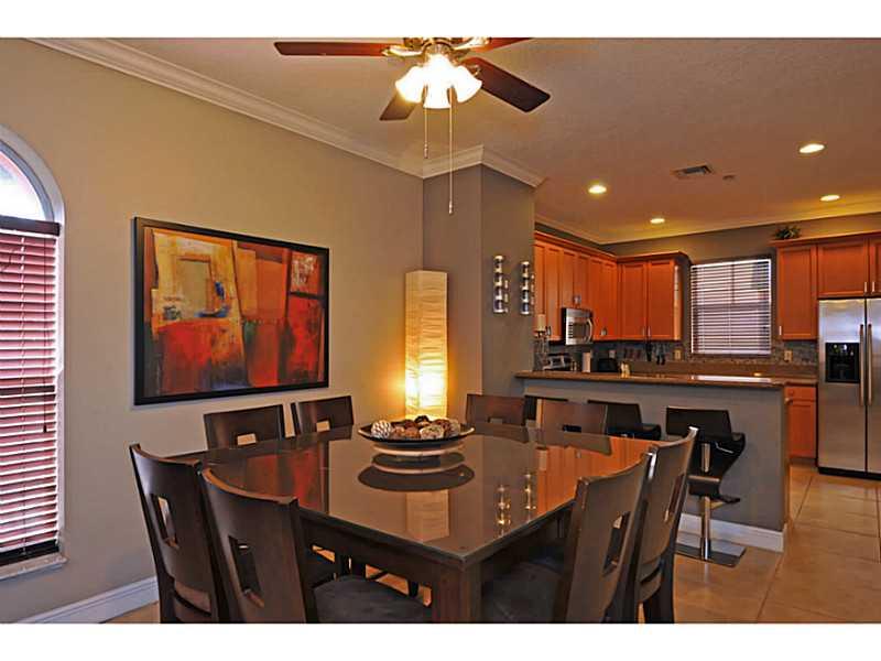 Stunning CORNER unit with huge private ROOF TOP TERRACE (approx 15X35) and many upgrades.Gated complex with pool right in front of the unit. Amazing living space with lots of room. Kitchen with beautiful wood cabinets & granite counter top. Stainless stee l appliances and full size, top of the line washer & dryer located in its own laundry room off the kitchen. Double car garage. Tile troughout. NO CARPET in this unit. Impact glass windows throughout. Very tastefully done, nothing to do.