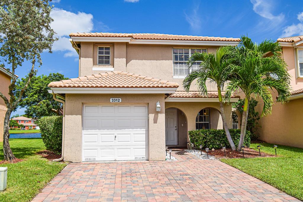 Fantastic location within Liberty Bay. Double lake views from the front and rear of this 3 bedroom, 2 1/2 bath home. You can see one of the two lakes from almost every room in the house. The garage has been converted into permitted office/den space on the first floor that's ideal for working from home. The home features a large living area downstairs with the extended family room and an open kitchen. All bedrooms are located on the second floor with a large master suite and a walk-in closet. Upgrades include a 2020 water heater, fenced yard and an expanded paver patio. Briar Bay has great community pools, jacuzzi, sports courts, playground, community room and on site excercise facility. The location provides easy access to the Turnpike, I-95, Okeechobee Blvd., West Palm and Wellington.