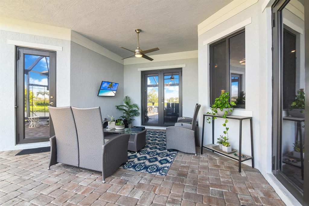 Desirable 4 bed 3 bath 3 car garage lakefront Cascata home in the Presidential Collection. Spacious one story open floor plan tastefully finished. Extended custom large private screened patio overlooking wonderful lake views with NO rear neighbors. Chef's dream kitchen equipped with stainless appliances, gas range, upgraded cabinets, quartz counters, and glass tile backsplash. Elegant lighting, modern fixtures, and designer wallpaper decorate this pristine property. Private and luxurious master suite. Impact windows/doors. Fully fenced in yard/dog run. Outdoor camera security system. 3 car split garage painted/sealed with a showroom finish. A+ rated schools. State-of-the art clubhouse, resort style pools, fitness centers, children's play room, billiards, lockers, sauna, and sports complex.