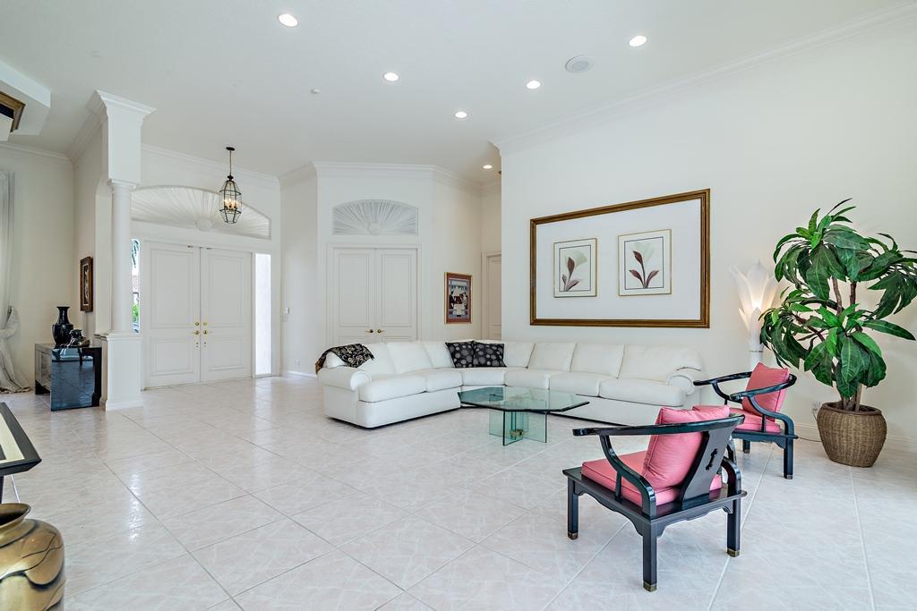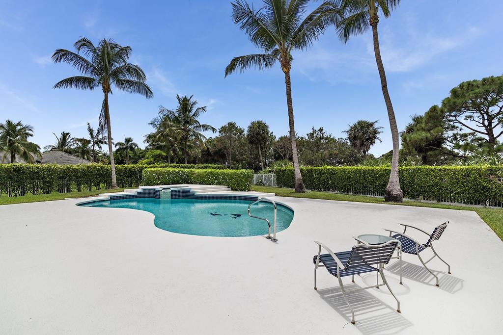 Stately and contemporary style in desirable Bear Lakes Estates. This spacious 4 bedroom /Convertible office/Den has an oversized 3 car garage with a circular drive and oversized full motor court positioned at the end of the cul de sac. High ceilings with custom lighting and moldings throughout adorn this beautifully maintained home. Extra large covered and screened loggia 15'4 x 41'6 overlooks a large patio, pool and spa. Lovely garden with views of the Bear Lakes country Club golf course . The entire garden is private and completely fenced with outdoor lighting to enjoy the Florida lifestyle both day and night. Expansive Kitchen takes in all the natural light and has high quality white solid wood cabinetry with designer recessed lighting.