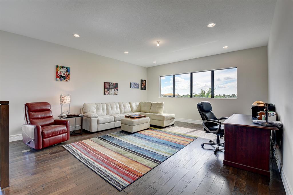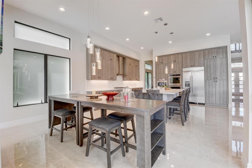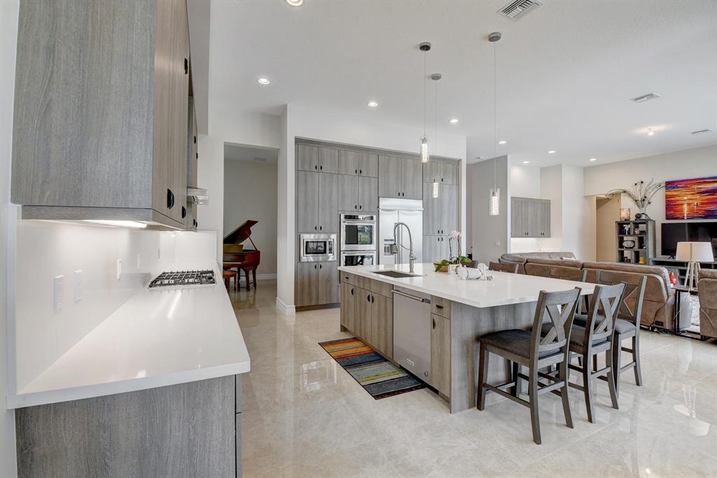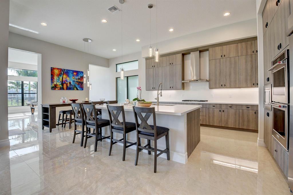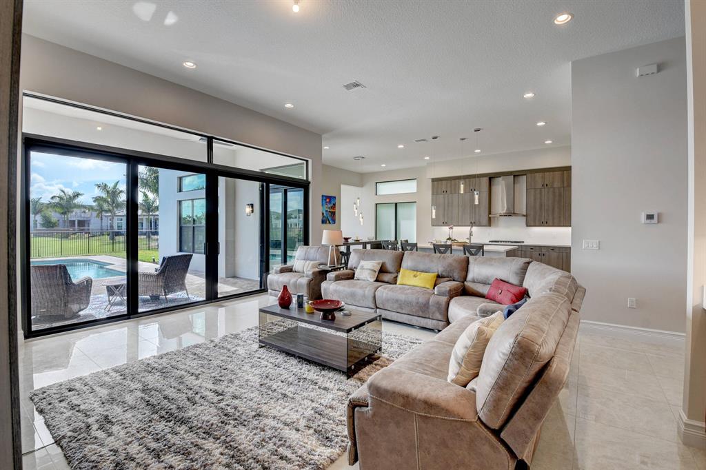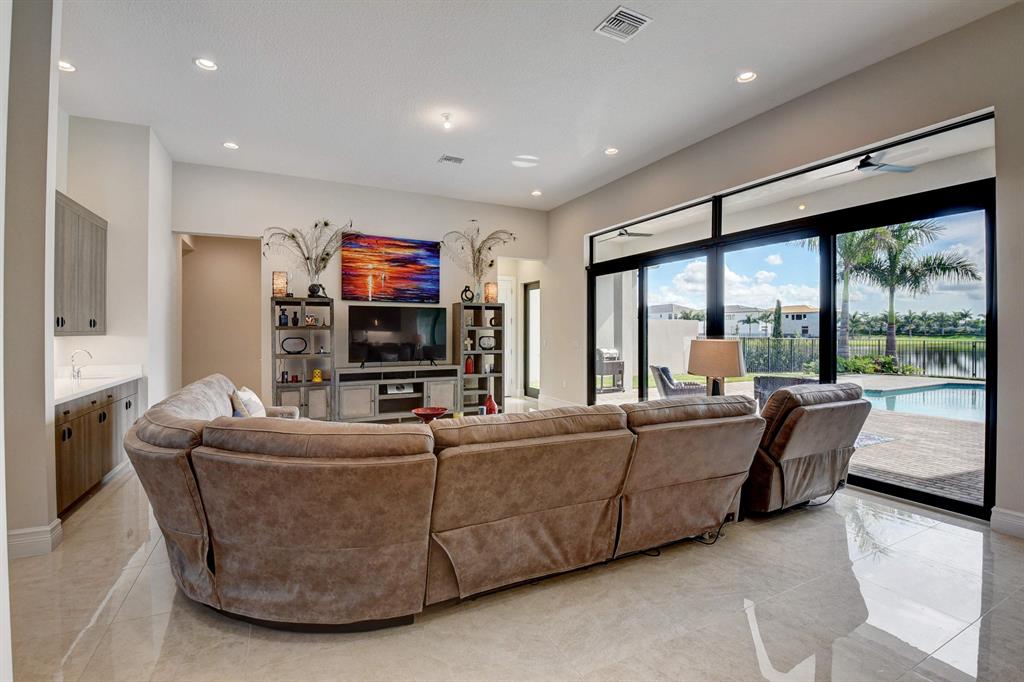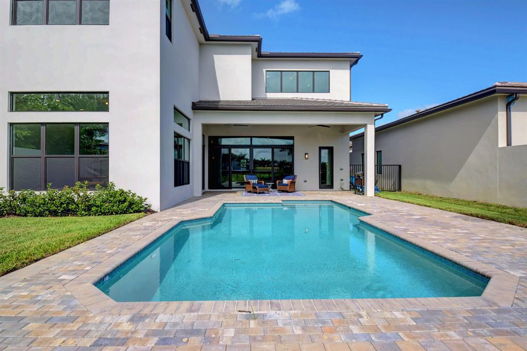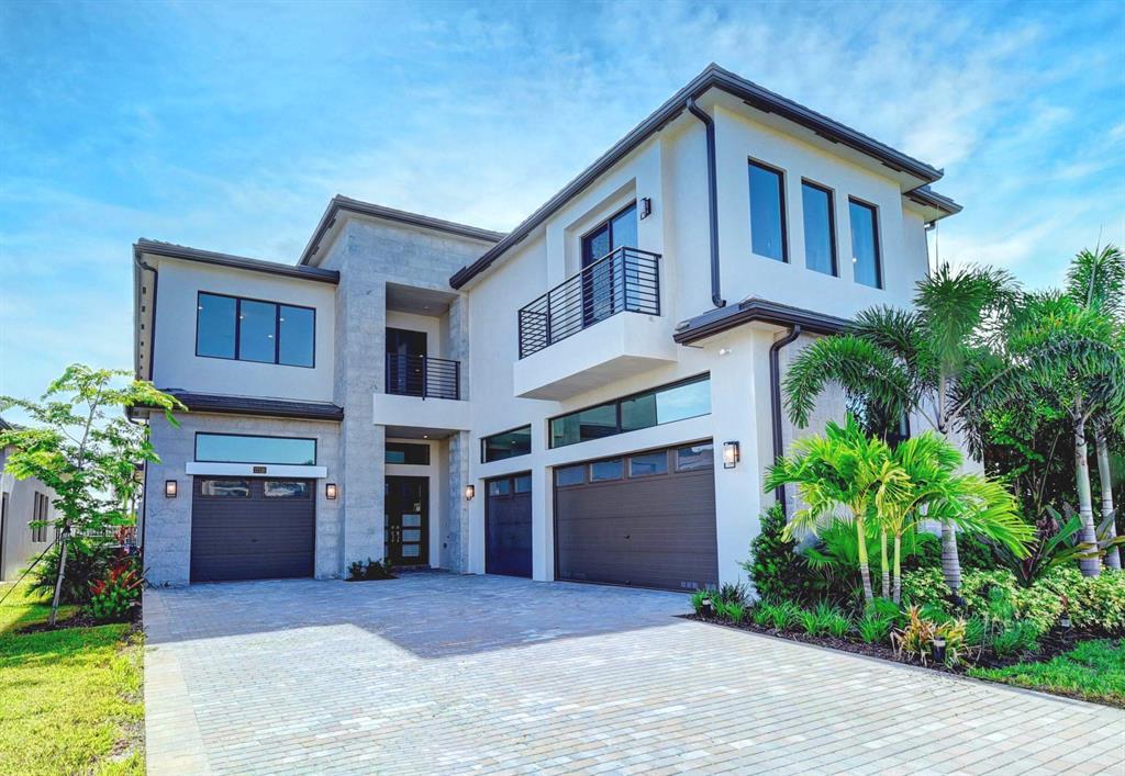 Contemporary Palma floor plan features 5 Bdms, 6 Bths, Loft, Game Room, Media Room & extended 4-Car Garage. Long lake views can be enjoyed from the light & bright east-facing living space and pool area. A neutral palette of finishes allows for your personal touch. High gloss porcelain tile in the main living areas, real wood on the staircase, engineered wood in the loft & common area. The kitchen is truly remarkable & highlighted by a huge island with sink & pendant lighting. Volume ceilings in the living areas . Wet bar with quartz counter. The 1st floor has a guest bedroom, bonus room & cabana bath. The master suite, en suite guest bedrooms, laundry & media room are on the upper level. The large yard could easily accommodate a play area. 2 Roboto 52'' wet-rated patio fans.