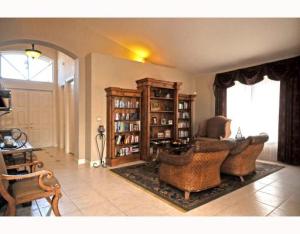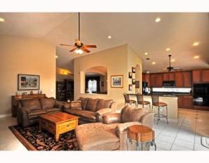 This four bedroom three bath home with three car garage sits on a south backing private home site with view of a preserve.Tile has been installed in all main living areas with tumblestone inserts in the foyer.Gourmet kitchen features wood cabinetry with pull-outs,crown molding and under cabinet lights,granite counters with undermount sink and extended breakfast bar,glass block at backsplash and large breakfast area with bay window.A butler's pantry with glass doors is located between the kitchen and formal dining room.All baths have been upgraded.Master suite features two built-in walk-in closets and a luxurious bath.You'll love the large patio area and pool with raised waterfall. One a/c replaced 7/2013. Located across street from Sunrise Park Elementary & Eagles Landing Middle Schools.