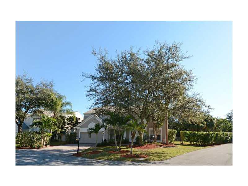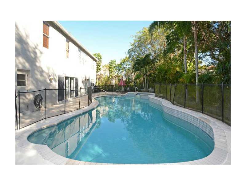 BRAND NEW ROOF JUST INSTALLED! Oversized, fenced cor. lot, bright and airy 5 BR/3 BA home(5th BR is an den/office on 1st floor) located in a quiet, family oriented gated community. Large tile throughout first floor, neutral Berber carpet upstairs. Double door entry into enormous master suite, walk-in closets with built-ins. Mstr bath and guest bath recently remodeled, frameless glass doors and modern décor. All sliding doors lead you to your true tropical paradise. Oversized lagoon shaped pool with spa