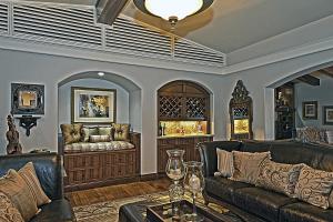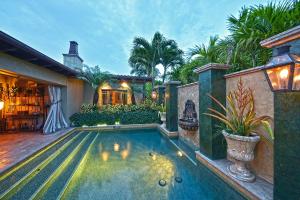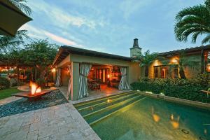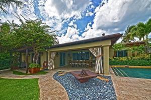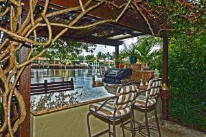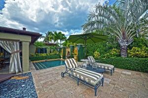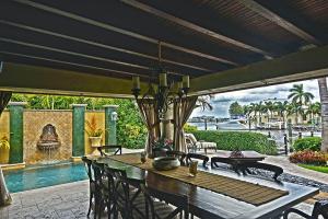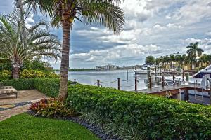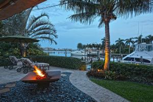 Tropical Waterfront Oasis, a true boater's dream home! 75 feet directly on deep water canal just a few homes off the Intracoastal. Boat dock with lift, water & electric. Own your own piece of paradise with this amazing and quietly spectacular 3BR/4BTH residence, garage and pool. Gas lanterns welcome guest into the walled courtyard entrance patio w/gas fireplace & covered front portico. Warmth and privacy is the theme throughout. Cathedral, wood beamed ceilings, wide planked and pegged floors combining phenomenal open spaces with panoramic water views. An exquisite ''French Country'' kitchen, farmer's sink, island, 6 burner wolf stove and custom glazed wood cabinetry. Fireplace in dining room w/French doors leading to alfresco covered patio. Luxurious master suite plus, plus, plus!