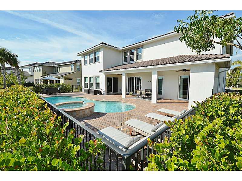 Immaculate 5 bedroom home with 4 and one half bathrooms. Wood Floors throughout main living areas and up the stairs. Chefs kitchen with all the finest upgrades and butlers pantry. Family room with a view to the lake and pool. All rooms spacious and bright . Impact windows throughout. 3 car garage. Plenty of storage in finished closets. Dramatic vaulted ceilings, beautiful finishings in each room. Located in the resort style living gated community of Heron Bay.