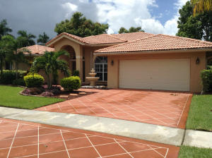 REDUCED FOR QUICK SALE!!!BEAUTIFUL BOCA WINDS MODEL 3/2 LOCATED IN 1ST SECTION!THE SOUNDS OF THE FRONT WATERFALL LEAD YOU THROUGH THE CHICAGO PAVERS THAT LINE THE AMAZING FRONT LANDSCAPING AND STAMPED DRIVEWAY.OPEN THE ETCHED GLASS WOOD DOORS AND YOU WILL FIND AN OPEN FLOOR PLAN WITH REAL WOOD FLOORS AND TILE.ACCORDIAN HURRICANE SHUTTERS. THIS HOME IS KEPT BEAUTIFULLY,REDUCED FOR QUICK SALE!!WHOLE HOUSE PLANTATION SHUTTERS, HUGE KITCHEN AND EAT-IN AREA,COUNTER HEIGHT BAR AREA,SEPARATE WASHER /DRYER ROOM,PANTRY AREA, ACCORDIAN HURRICANE SHUTTERS THROUGHOUT,BURGLAR ALARM AND ADDED SAFETY DEAD BOLTS,AUTOMATIC SPRINKLERS, FENCED AND HEDGED BACKYARD AND SIDES,DECORA SWITCHES,EVEN WOOD FLOORING IN THE ATTIC FOR EXTRA STORAGE!THE CLUBHOUSE IS JUST AROUND THE CORNER WITH FULL AMENITIE