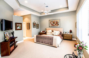 Superb Great room home with wonderful water and golf views. Move in perfect with 3BR/3BA/Study, Accordian Shutters, Phantom screen on large patio with oversized heated pool. Very upgraded cabinets and appliances in kitchen, all closets professionally done, double desks in stunning custom built in in Study, AC's and Pool Heater are two years old, wood cabinets in Master bath, flat screen TV in Master bedroom, neutral tones throughout. Villagio is a community where you can walk to the club, pool, and fitness center. All new Sports Village is incredible and resort-like. Clubhouse will be complete in 11 months. This home and Ibis should not be missed.