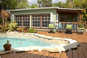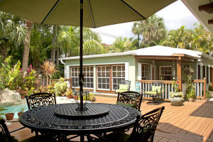 Located in the desirable historic district of El Cid and just 4 houses from the intracoastal, this 'Key West' style home has it all!!Lush landscaping,saltwater pool & metal roof are but a few of the amenities afforded in this unique home. Main house features a huge downstairs master with custom closets andsaturnia marble baths. Also has a master upstairs with full ensuite bathroom as well. Den with full bath can be converted into another bedroom if needed. Another 1bd/1ba room is connected to main home with a private side entrance. Custom kitchen cabinets, granite tops and stainless steel appliances. Raw cypress wood accentsare found throughout..your guests can escape to a charming 1bd/1ba 504sq.ft. cottage in the rear that features a Florida/living room and full kit.