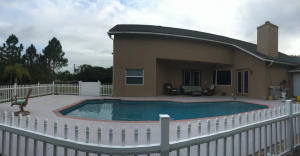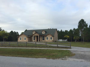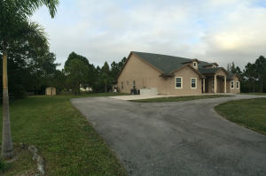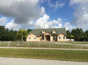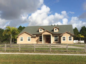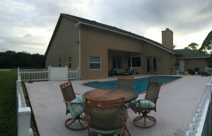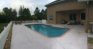 Beautifully renovated and updated pool home located on a paved road in the acreage. This attractive 4 bedroom + den, 3 bathroom CBS home offers a spacious split floor plan with ceramic tile throughout, recreation/game room, upgraded kitchen with granite and stainless steel appliances, wood burning fireplace and pool area that's great for entertaining. This home has too many features to mention, including: crown molding, child safety electric outlets, tank-less water heater, new air conditioning system, upgraded water softener system, alarm system and hurricane impact windows. The property is completely fenced and has a circular driveway with plenty of room to park your RV or boat. This property is not located in a high-risk flood zone and flood insurance is not required. This is must see!