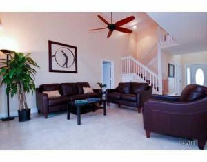 ACCEPTING BACKUP OFFERS. Spacious, very clean 4 b/r, 2.5 bath home. Master b/r on first floor. Vaulted ceilings, central vac, screened patio overlooks garden. Newer tiled floors with wood staircase and 2nd floor. Large side yard. Newer S tile roof with hurricane panels. Home comes complete with a main electric generator switch panel for use during power outages. Excellent community with wonderful recreation center. Low HOA includes Cable & HBO. Close to A rated schools.Dining room fixture does not convey.
