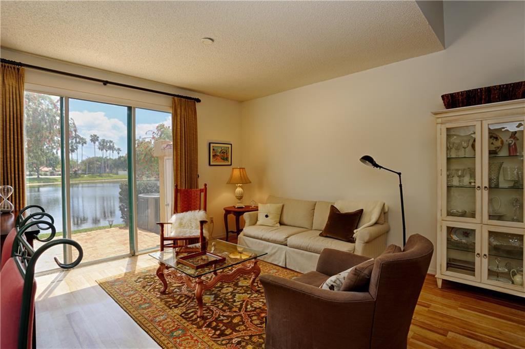 Immaculate waterfront 3/2.5 Allegro townhome in prime location. Enjoy coffee or an evening cocktail on your Chicago brick patio w/expansive water views. Soaring ceilings w/skylight & Pergo maple floors greet you as you enter this move-in ready home. Open concept kitchen w/great storage, Master bedroom suite w/private bath, dual vanity & large walk-in closet. Newer AC Trane system, custom garage Tec modular walls. Community pool & spa, playground, walking/biking path, minutes to I-75, A+ school & MORE!