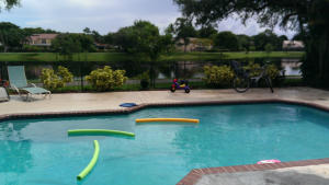 Beautiful large lake view, large pool and patio, fenced backyard, High ceilings, open kitchen, great room, tile floors on first floor, bright open floor plan, one bedroom down and three up. Second HOA to via Verde $99. a year.