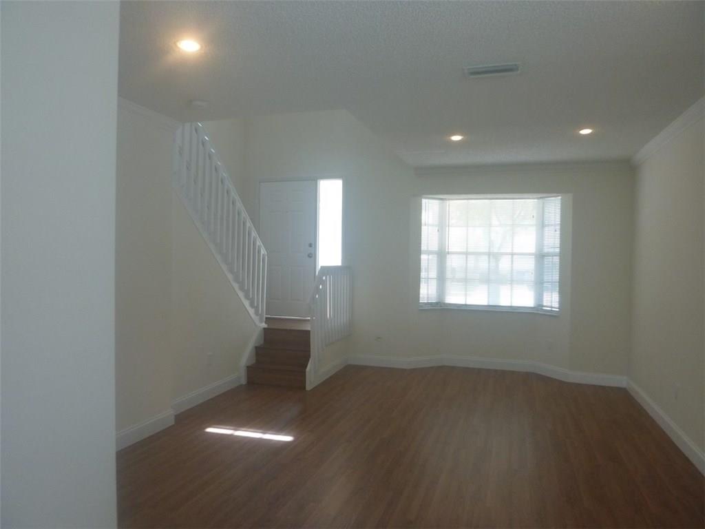 Gorgeous2 story contemporary style updated home with volume ceilings. Interior features new kitchen, granite counters, newer appliances, brand new wood flooring, freshly painted inside and out. Bathrooms have been renovated with new vanities This home is located in a great community with low HOA fees.