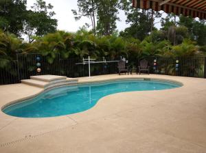 This home has everything. Spectacular curb appeal includes beautifully manicured and landscaped lawn with full yard irrigation system. Fully fenced in yard. Concrete driveway with new concrete 12'x 50' slab perfect for a boat or RV. 10'x14' shed. Recently painted inside and out. Beautiful outdoor patio with pool, retractable awning and screened lanai. New pool pump in 2012 and new salt water system in 2011. Home has stand alone generator (45KW) that powers the whole house in the event of a power outage. Home has 2 wells (one for the house and one for the sprinkler system). Property is 3 homes in from the paved road. Home also has hurricane shutters and a 3 car garage. Interior features include: 3 bedrooms 2 bathrooms plus a den, double door entry, large foyer, 18'' neutral tile