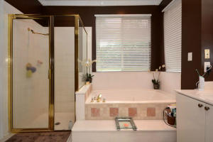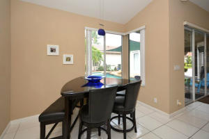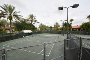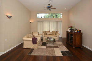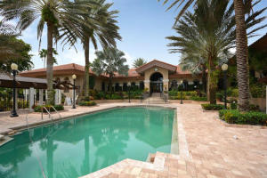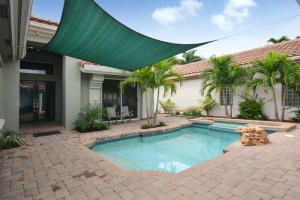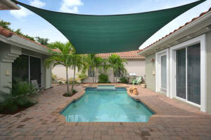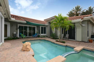 Tastefully updated with high end materials.Granite and stainless kitchen with 48 inch double ovens.Wine cooler and top of line plumbig fixtures. Engineered wood flooring in master and some living areas. White tile no carpet in remaining rooms.Courtyard pool, spa and waterfall. Master bath updated has tub, shower and dual sinks. California closets, crown moulding. The property has a berm. Assessment for beautiful community facilities has been paid in full. 24 hour guard gate, clubhouse with fitness, heated pool, card rooms, billiards and tennis courts. Live in the heart of Boca Raton. Easy access to Towne Center Mall, fine dining and all major highways.