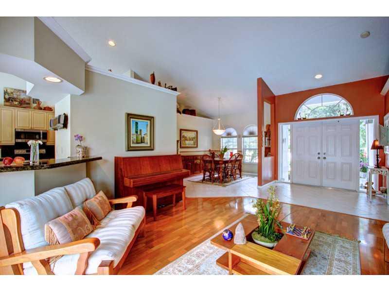 This phenomenal 4 bedroom, 3 bath pool home is located in an upscale community in north Coral Springs. This unique triple split bedroom floor plan provides privacy and open living spaces. Updated kitchen with 42' wood cabinets, newer stainless steels app liances, granite counter tops, ceramics and hardwood floors throughout. Large bedrooms and additional features as vaulted ceilings, walking closets, accordion hurricane shutters, fenced backyard, A/C is 3 years old. Very motivated owners.