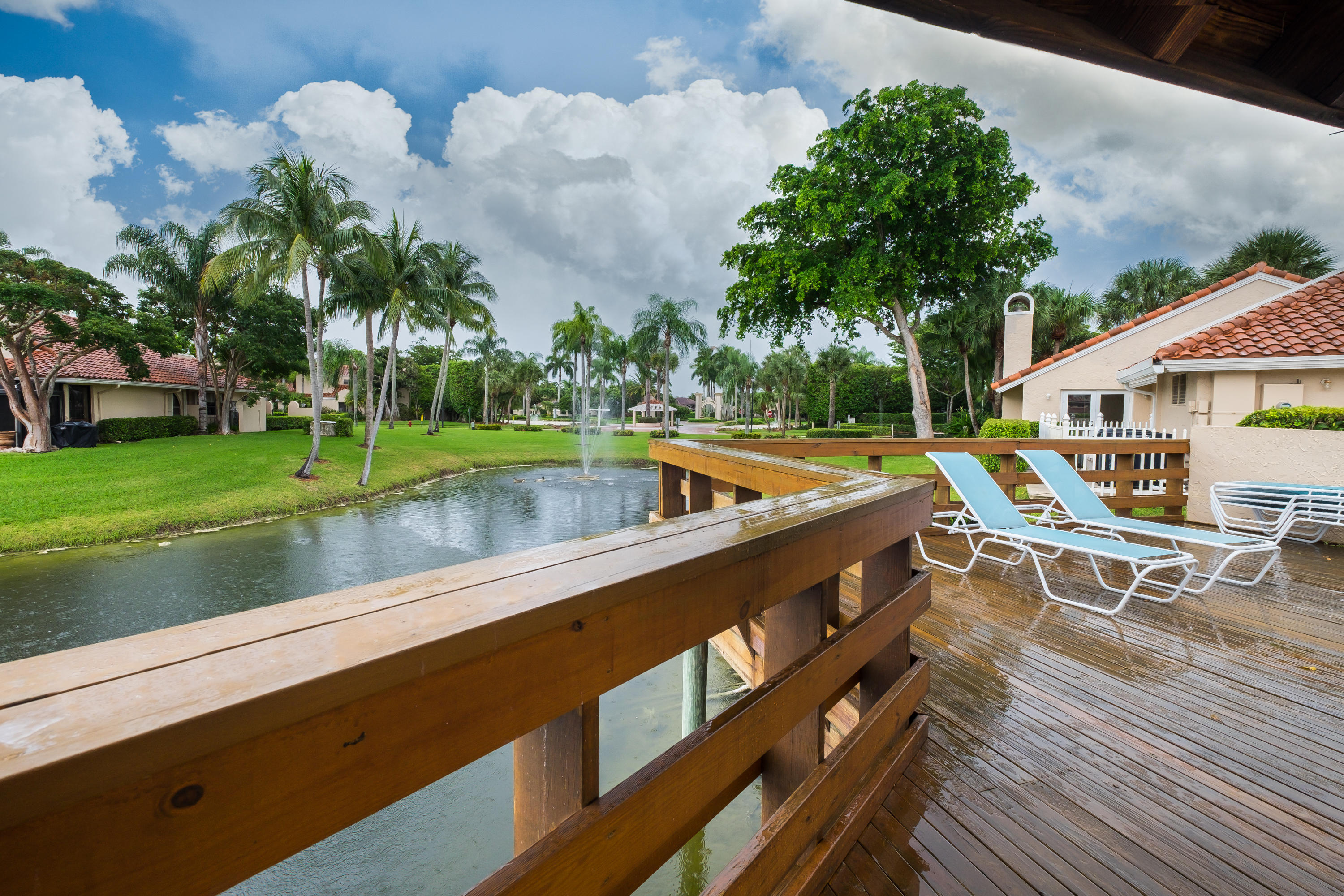 Lovely Townhouse, 3 bedrooms, 3 full baths with a 1 car attached garage. There are 2 master suites. One is located on the 1ST FLOOR and the other on the 2ND FLOOR. 3rd bedroom is currently open and being used as an office/den. Updated and expanded eat - in Designer kitchen with exotic Granite Counters, Custom wood cabinets and Engineered wood laminate floors. Open living room - Dinning room area with views of the golf course. Nice size screened patio enclosure with quite and serene views of the lake and Golf course. Membership to the Boca Pointe Country Club is optional with many affordable plans to choose from. HOA fee includes, exterior insurance, roof (replaced in 2007), cable, Alarm, clubroom, heated pool, Jacuzzi and 24 manned security gate. All ages, Pets allowed with restrictions.