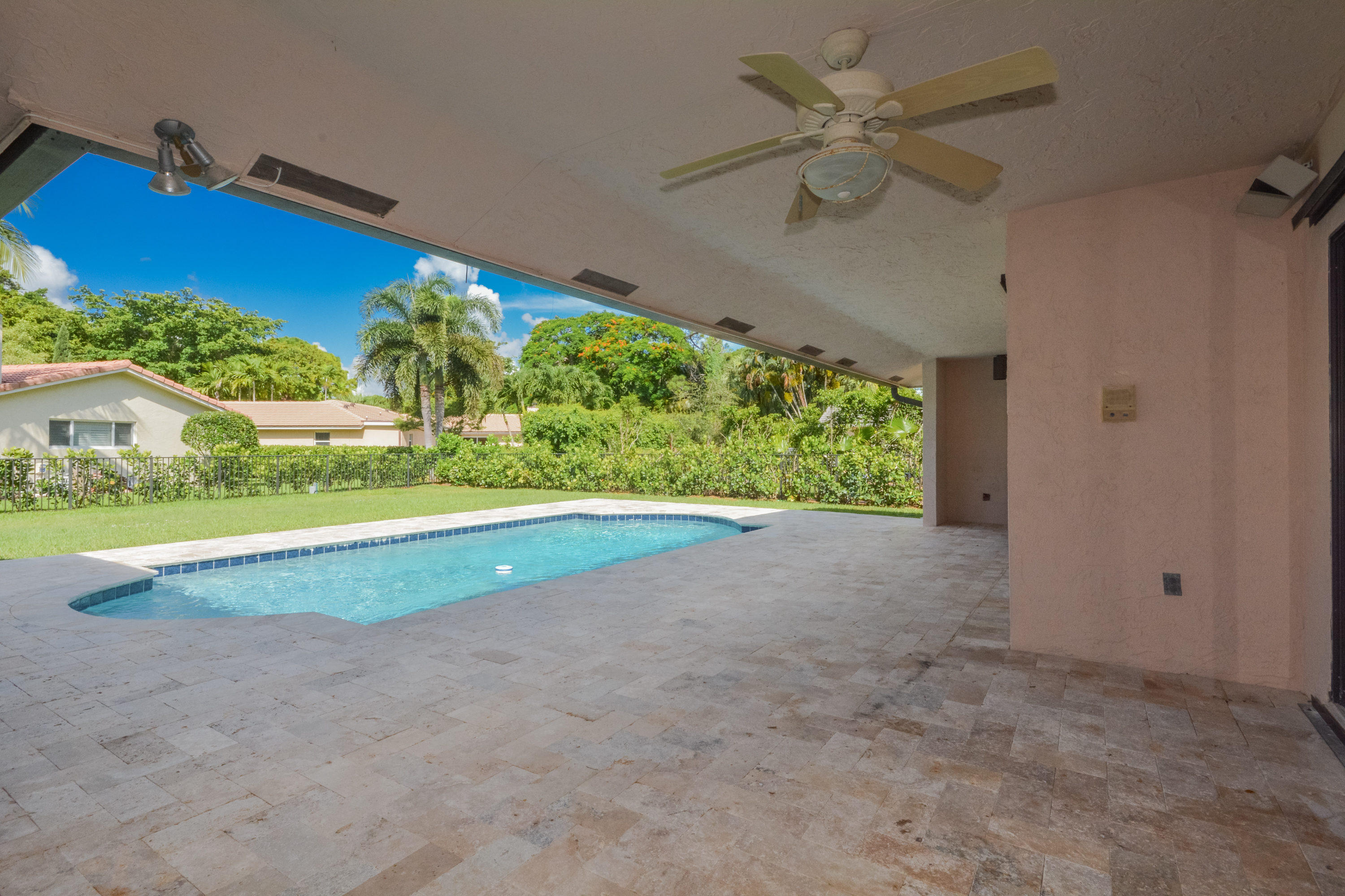 Beautifully renovated 4 bedroom, 2 bath home situated on a large corner fenced lot. Gorgeous kitchen with white wood cabinets, granite countertops, and stainless steel appliances, and large island. Redone bathrooms. Coral fireplace, and built-ins in the family room. Large tile floors on the diagonal in the main living areas. Marble patio area with inground pool, and large fenced backyard.