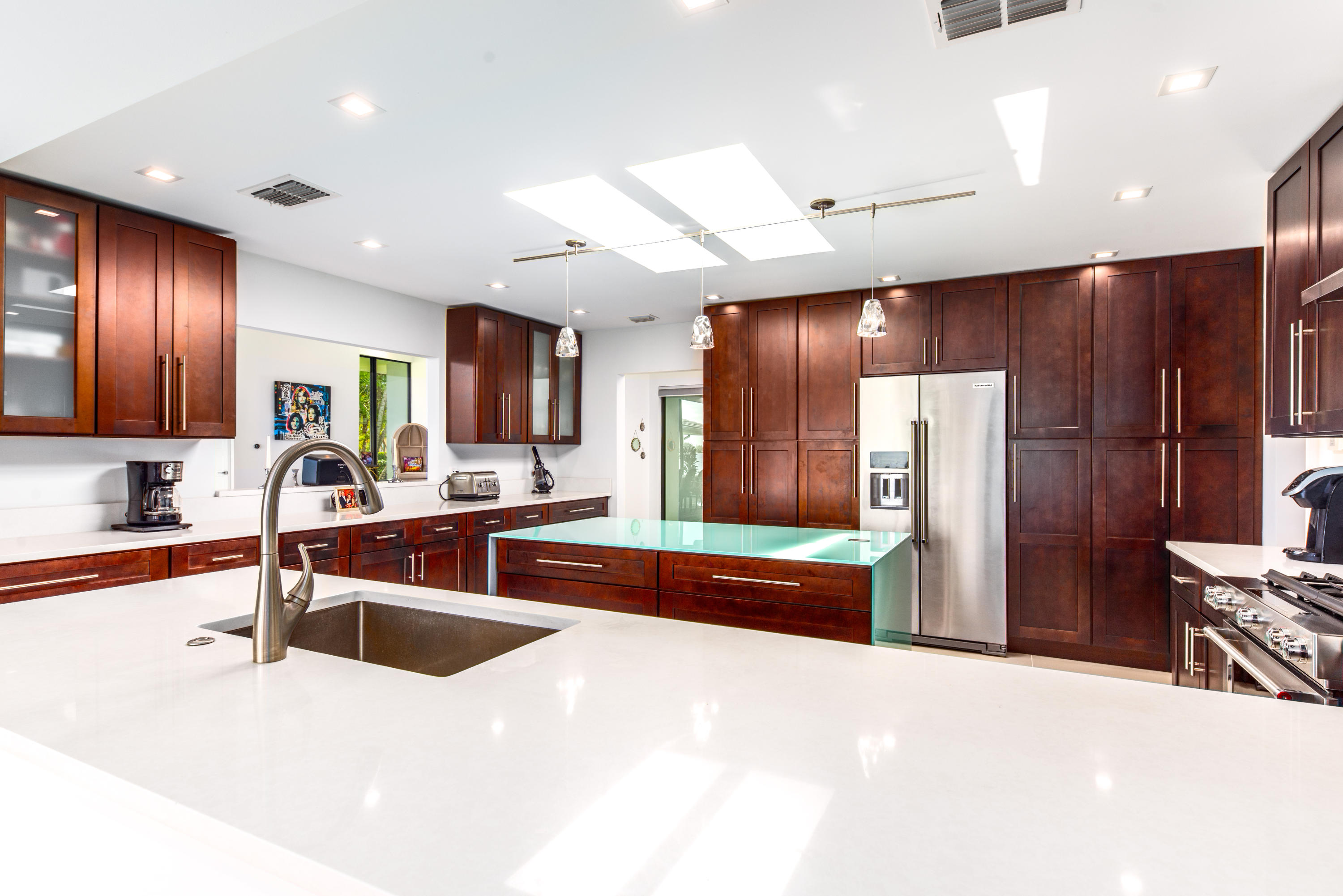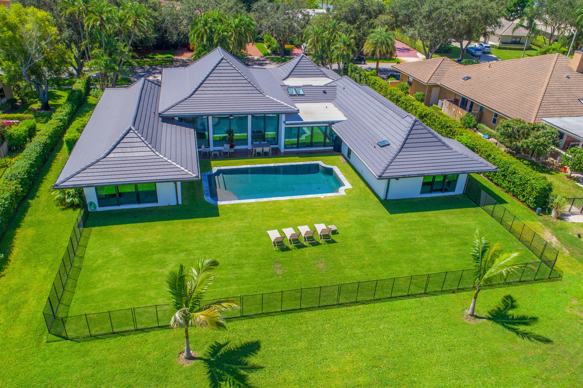 Chic and stunningly renovated 5 bedroom, 5 1/2 bath in desirable Presidential Estates. A centrally located, gated community. This well scaled home sits on a large lot with generous outdoor living space and pool area. Open gourmet kitchen, impact glass, 2 car garage, community tennis courts. Close proximity to shopping, airport and Banyan Cay.