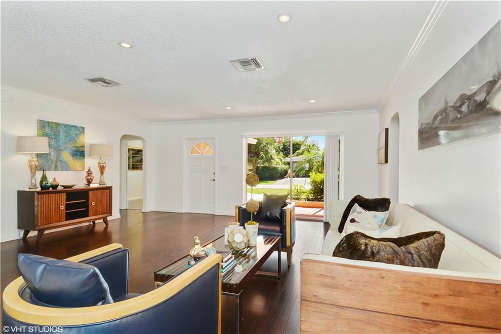Lowest priced 3/2 with a pool in Coral Ridge. Nicely updated. East of Bayview. "Great Room" floor plan w/ room to expand. Beautiful pool and patio area. New wood floors. New ceramic tile baths, granite counters & seamless glass shower enclosure. New AC unit, H2O heater & electric panel. Newer white kitchen cabinets and appliances. Separate interior laundry room w/extra storage (not in the garage!) Some impact glass. 2CG. Plus Bayview Elementary! A perfect starter & family home. Best deal in Coral Ridge.