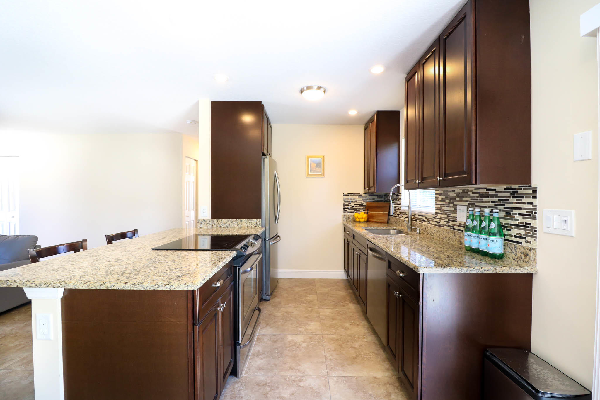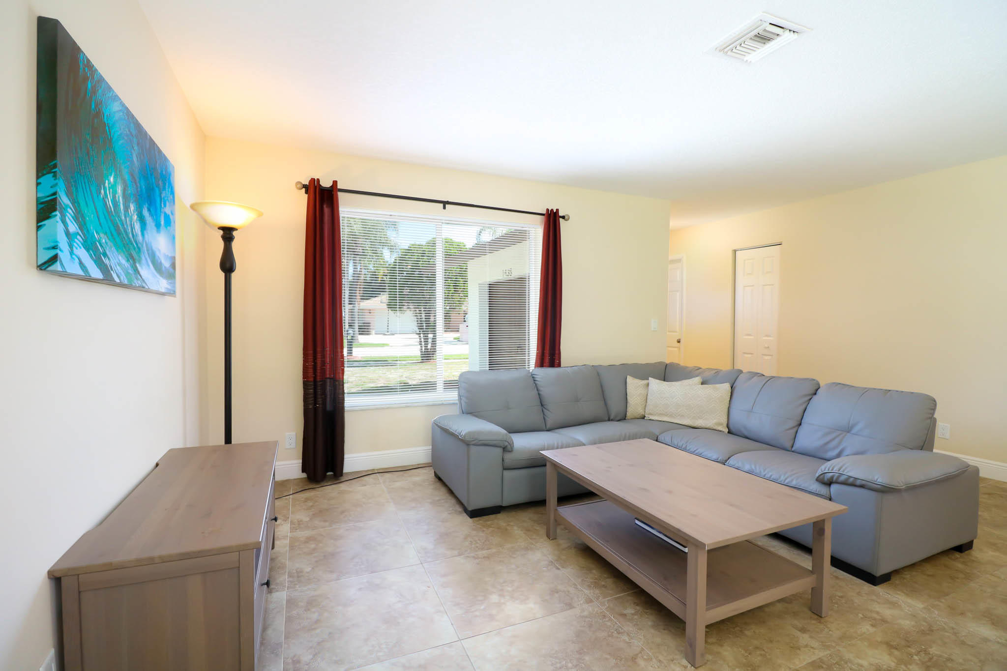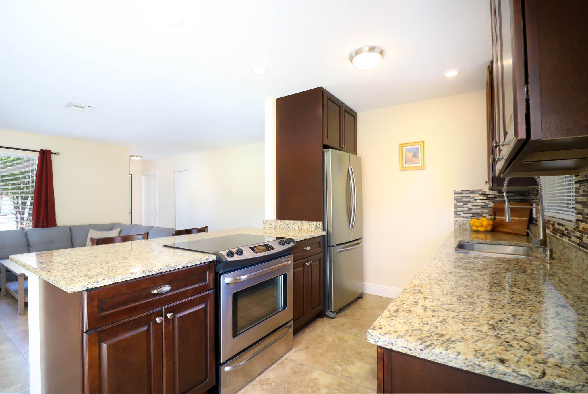 Beautiful Home located near Palm Beach Outlets on Lake Mangonia. 3/2 split floor plan. Updated with porcelain tile 24x24 throughout, granite countertops, Stainless Steel appliances, ceramic tile bathroom. Vent fan with timer in both bathrooms. Newer Washer and Dryer and water heater in 1 Car Garage.
