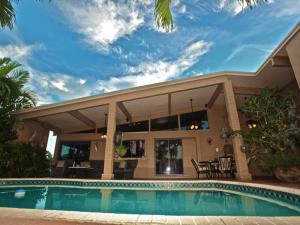 Beautifully lit landscaped corner home. Cul de sac end on canal w/intercoastal access. 2 boat docks/deck. Heated Pool. Travertine/laminate flrs. Granite/marble cntertops; stone bcksplsh. Newer wndws/drs.Hurricane French Dr w/ plantation shutters. Baths: hi-end fixtures,undermnt sinks, marble cnters, cstm mirrors, frameless shwr doors, jetted tub. Lndry: pool access, W/D, sink, wall cbnts.Garage: cbnts, wkbench, refrigerator. Granite bar, table, 4 chairs and custom ltg. 2 sty rm w/work bench/sink.
