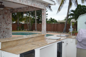 Come live the Florida life in east Boca!Tropical, 15 min walk to beach, beautiful outside pool on an over sized corner lot. Fully fenced in back and side yards. Outside kitchen, what more can you ask for! Owner said to sell.