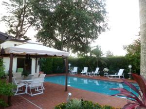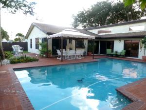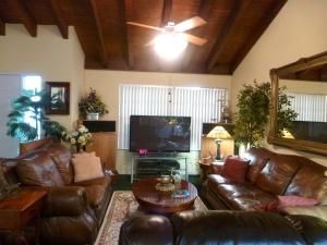 Welcome to the jewel of the Palm Aire Village neighborhood. This corner lot pool home with perimeter wood fencing is in pristine condition as you arrive to shady oaks and extended paver driveway. A California contemporary architectural masterpiece awaits you. This inviting home has 3/2 floor plan to upgraded glossy white ceramic tile in the common area, carpeting in the sunken living room and bedrooms, enjoy the vaulted cedar beam ceiling that adds character and richness to the home, upgraded ceiling fans throughout, water softening system in the entire home. Featuring a brand new 2014 roof with full warranty and new fascia boards around the home, new electrical panel, new Trane Ac unit has recently been installed. Newer high efficiency Trom washer and dryer,new Genie high end and whisper