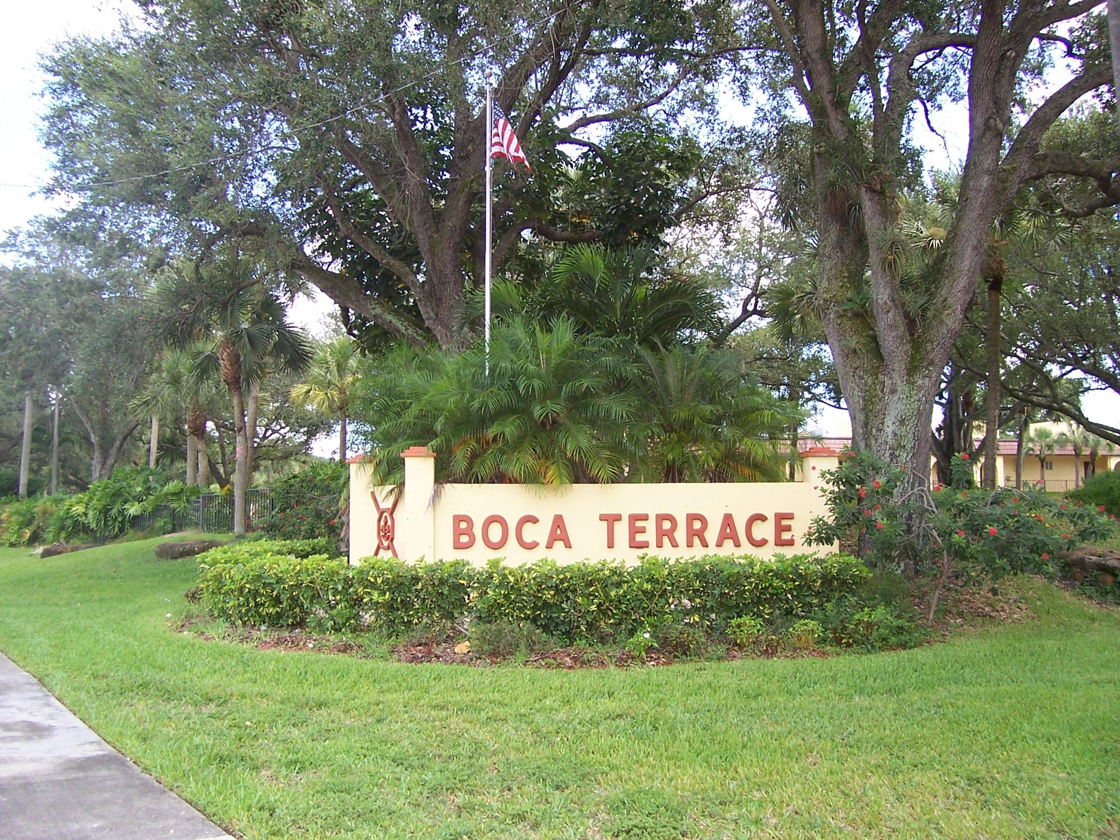 BOCA TERRACE IS AN ALL AGE COMMUNITY, NEAR FAU AND LYNN U., TOWN CENTER MALL AND I-95 ENTRANCE, TWO MILES TO THEBEACH. IT HAS TWO POOLS PLUS A KIDDIE POOL, TWO TENNIS COURTS, A CLUBHOUSE, SAUNA,THREE LAKES,AND A CHILDREN'S PLAYGROUND, PLEASE NO TRUCKS OR M/C'S.ONLY TWO VEHICLES ALLOWED, ONE PARKINGPLACE IS ASSIGNED AND ONE GUEST SPOT