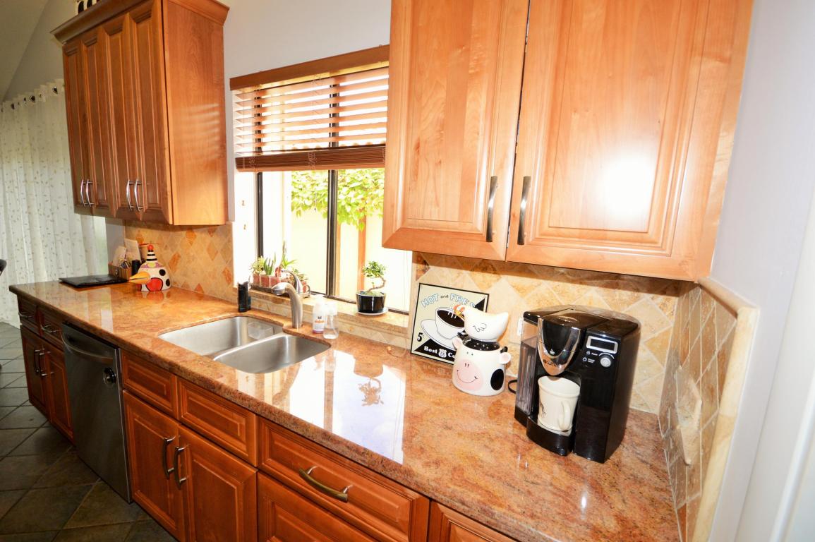 This spectacular home in Saratoga Pointe community is located close to great Palm Beach Lakes amenities, Village Commons, Bear Lakes Country Club, 10 min from PBI Airport, WPB Downtown, Beaches, and I-95. Home features nicely renovated kitchen with granite countertops, stainless steel appliances, tumbled marble backsplash, 42'' wood cabinets, under counter lighting, and a pantry. There are beautiful diagonal porcelain tile flooring and vaulted ceiling in main living area, wood floors in bedrooms, large closets in Master Bedroom, oversize shower cabin in Master Bath, Roman tub, recessed and under cabinet lighting, double vanity, marble countertop and new toilets. Home has a tinted windows, accordion hurricane shutters, new A/C and new water heater. All tastefully decorated, super clean.