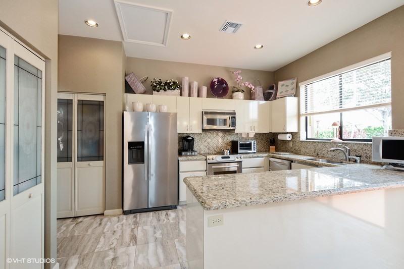 Luxurious attention to details in this upgraded Lakefront Home! Master suite on 1st level! Soaring ceiling elevations! Expanded renovated kitchen! Roof Installed in 2009! Beautiful marble floors, fireplace, generous custom closets, hurricane accordion shutters, hurricane garage door, washer and dryer in kitchen area. Large newly resurfaced heated pool surrounded by lush landscaping. Available furnished! Equity Available, but not Mandatory!