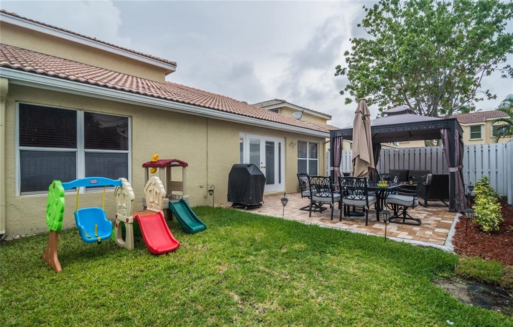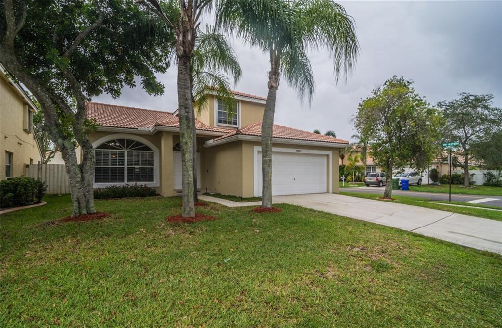 Lovely 3/2.5 corner home with upgraded granite kitchen. New laminate flooring in Master Bedroom. Updated Master & guest bathrooms. Brand new textured ceilings in main living areas just finished! Plantation Shutters, rear patio brick pavers; newer rear doors, hurricane panels. Newer A/C & hot water heater, new sprinkler pump & sprinkler system being updated now. Alarm, utility room, linen closets. Open floorplan is great for entertaining! Wonderful community with low HOA fees. WARRANTY! A+schools!