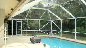 Country living in the city! Not a distressed property, seller can close when buyer is ready. Exceptionally clean, modern, CBS, hip roof, pool home and a barn on a beautifully landscaped acre in Palm Beach Farms right off Jog Road in West Palm Beach. Entire acre is fenced in with sprinkler system and electric gate at driveway entrance. Enjoy the 32X14 freeform pool under a huge 51X37 roofed and screened porch with Lanai. Split floor plan makes for convenient living. Enter through front door to a massive living room/family room area seperated by an impressive island fireplace. Adjacent is a very large 21.6X15 eat-in kitchen with 3 pantries and a bay window overlooking a spacious patio and pool area. 3 sets of matching french doors, two from the family room and one from the