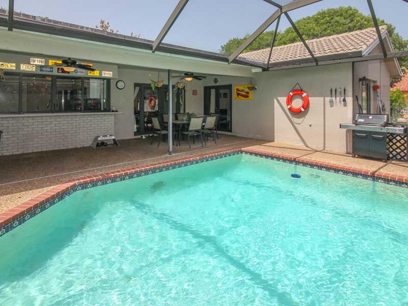 3 bedroom 2 bath home in sought after Nob Hill Estates. Step down living room w/ large window gives the perfect amount of natural lighting. Volume ceilings w/ beautiful wood beams in living/dining rooms. Open kitchen features white cabinetry, newer appli ances & center island. Master bedroom has walk-in closet & cabana bath. Updated second bath! Oversized screened-in backyard w/ covered patio and pool. Impact windows! Newer roof & A/C. Close to highways, shopping & restaurants.