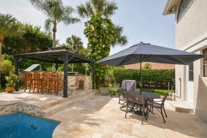 Beautifully updated and upgraded 4 bedroom with office, 4.1 bath 2 story home in the desirable neighborhood of Parkside. A serene and tropical setting with a completely renovated pool/spa. The outdoor kitchen bar area is surrounded by marble decking all completed within the past 2 years. You'll love the large private green space for the backyard. Inside you will find all new wood flooring; plantation shutters, crown molding; and a cozy fireplace. Updates include 1/2 bath & ful , french door,fencing and a circular driveway. The beautifully laid out kitchen has many designer details including granite counters and top of the line appliances. Roof replaced in 2006, replaced A/C's (both condenser and air handler in 2009), water heater in 2007, Replaced pool filter motor in 2012.