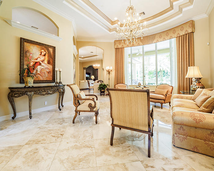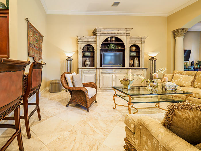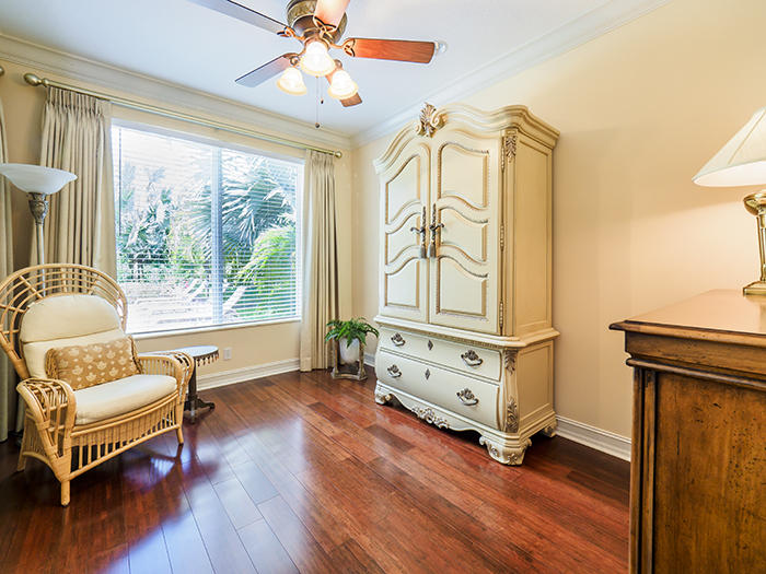 Over $200,000 in upgrades! Private and elegantly appointed, this sleek 4BR/4.5BA+Den+Media Room is perfect for the Ibis buyer who wants luxurious appointments, a premium large (half-acre) lot, and a great sense of privacy. Sleek, polished 24''x24'' Saturnia marble and Brazilian Cherry Wood floors, Impact Glass, highly upgraded gourmet kitchen with 42'' wood cabinetry, stunning granite, stainless appliances, butler's pantry with wine cooler. Extensive designer touches throughout including extensive moldings, custom window treatments, Venetian plaster accent walls, designer light fixtures. The media room/theater includes a handsome bar, an LG TV and sound system, custom leather reclining seats. 3-zone AC, new summer kitchen w/2 grills, air conditioned garage, sitting room off master BR.