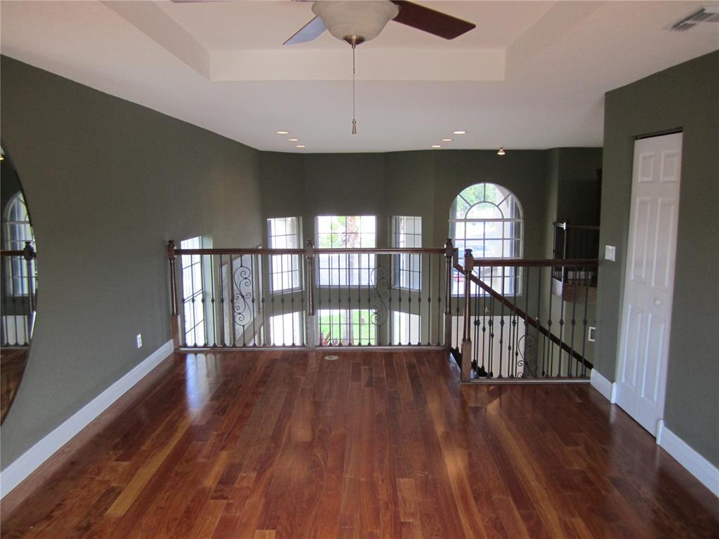 Sprawling estate home featuring 5 Bedroom 3 Bath 3 Car garage with upstairs loft. The house is located on an oversized lot in a cul-de-sac. The home has 1 bedroom downstairs along with 4 bedrooms upstairs. The upstairs loft, that could be a 6th bedroom, opens up to the back porch that extends the entire length of the house. Downstairs there is a beautiful winding wood staircase along with custom murals and mirrors. The remodeled kitchen features upgraded appliances along with an open feature that flow