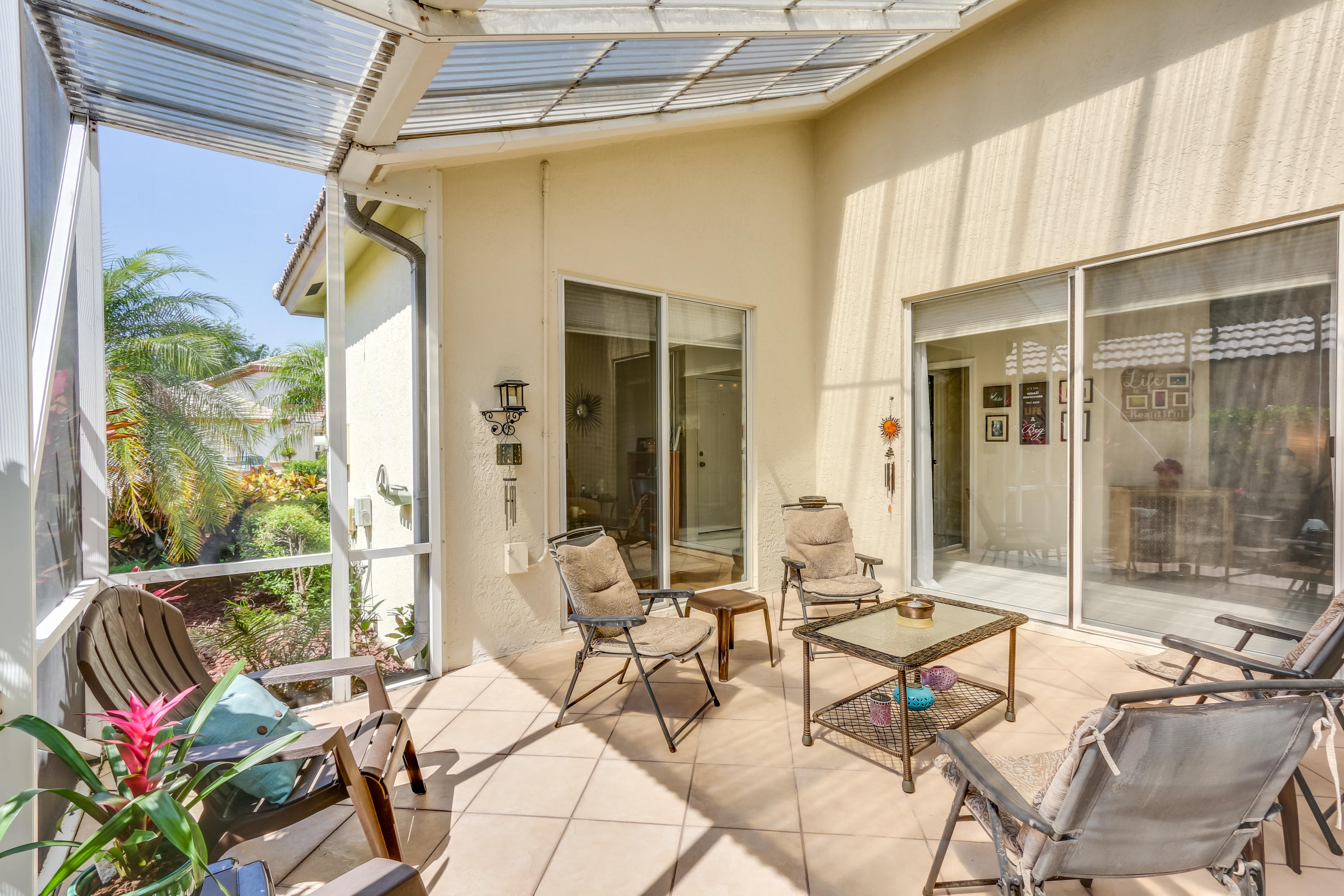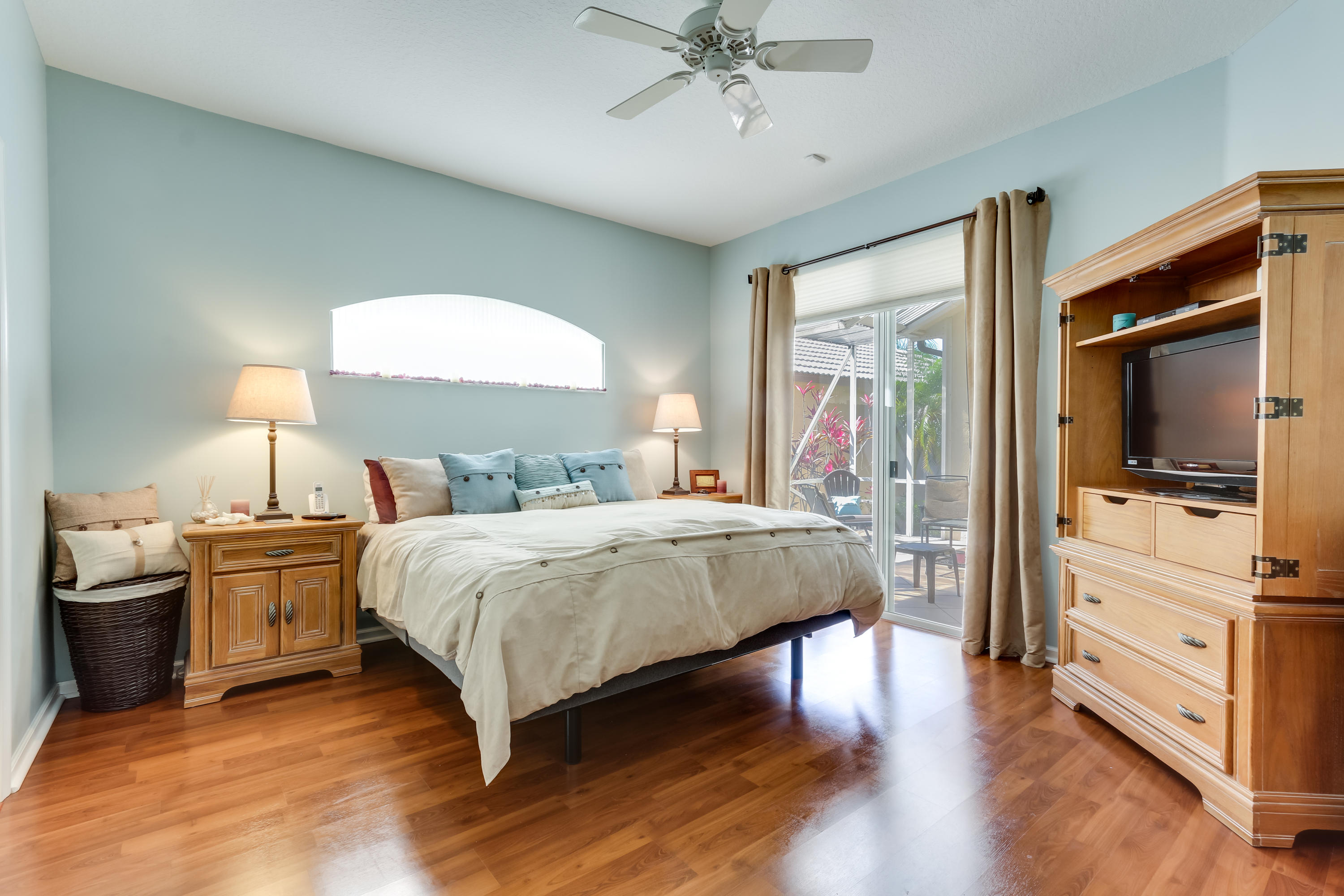 A true beauty!! 1 story single family home with a great split floor plan and open living room, 3 bedrooms (one bedroom set up as an office/den) 2 bath, and 2 car garage with high tech garage floor-tiles and electrical system generator back-up, immaculate clean & cozy nothing-to-do home, move-in ready! tiled & laminate floors and all neutral paint, remodeled kitchen with granite counter-tops and SS appliances, newer AC unit, Master bedroom with large walk-in closet , custom bath with dual sinks, separate shower & Jacuzzi bath tub. Two screened & tiled back & side patios, back patio has retractable awning. Very peaceful community, located in a desirable vacation like setting close to all shopping and highway (be sure to click & view the matter-port video link) River Bridge is a delight: