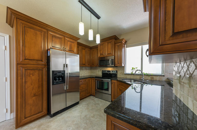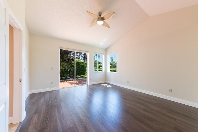 This move-in-ready 3 bed 2.5 bath home is located in the Central Boca community of Boca Country Club - BCC does not have a mandatory membership fee. On the interior this home features: a first floor master, two additional bedrooms on the second floor, updated kitchen with stainless steel appliances, remodeled bathrooms, tile & wood flooring throughout, vaulted ceilings, neutral color pallet and plenty of natural light. On the exterior this perfectly positioned home has: been professionally painted, accordion shutters, newer roof, private backyard and lush tropical landscaping. The home is located on a premium lot with no rear neighbors; it is completely fenced, zoned for top rated schools, conveniently located to everything and the HOA includes cable, landscaping and security. Must See!