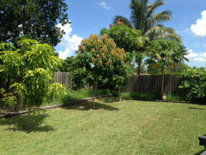 ABSOLUTE TURN KEY HOME. SHOWS LIKE A MODEL. WIDE CROWN MOLDINGS THRUOUT HOME. UPGRADED PASS THRU KITCHEN WITH 42 INCH CUSTOM WOOD CABINETS W/ NICE THICK GRANITE CONTOURED. GREAT VIEW OF GARDEN FROM KITCHEN WINDOW. FENCED BACK YARD WITH LUSH TROPICAL FRUIT TREES (MANGOS, AVOCADOS, COCONUTS & MORE)& LANDSCAPING WITH AUTO SPRINKLER SYSTEM WITH WELL. BOTH BATHROOMS FEATURE NEW GRANITE COUNTERS AND WOOD VANITIES WITH CUSTOM MIRRORS. LOCATED ON NICE SHORT CUL-DE-SAC STREET.