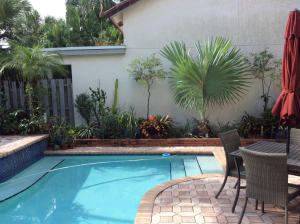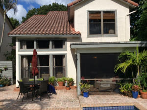 This home has it all! Gorgeous, updated, private two story pool home on lake, located on a quiet cul-de-sac. Lushly landscaped lot with screened in patio area. Gated courtyard entry complete with its own Koi pond and waterfall! Maple kitchen cabinets with brand new stainless steel appliances, granite countertops and recently updated kitchen backsplash. Updated baths, doors,and lighting throughout. Extensive storage/shelving in garage. Ceramic tile and bamboo hardwood floors. Lovingly cared for, with many upgrades and customization throughout. Convenient town center location within walking distance to restaurants, Publix, shops and tennis. Close to 95/Turnpike, beaches and universities!