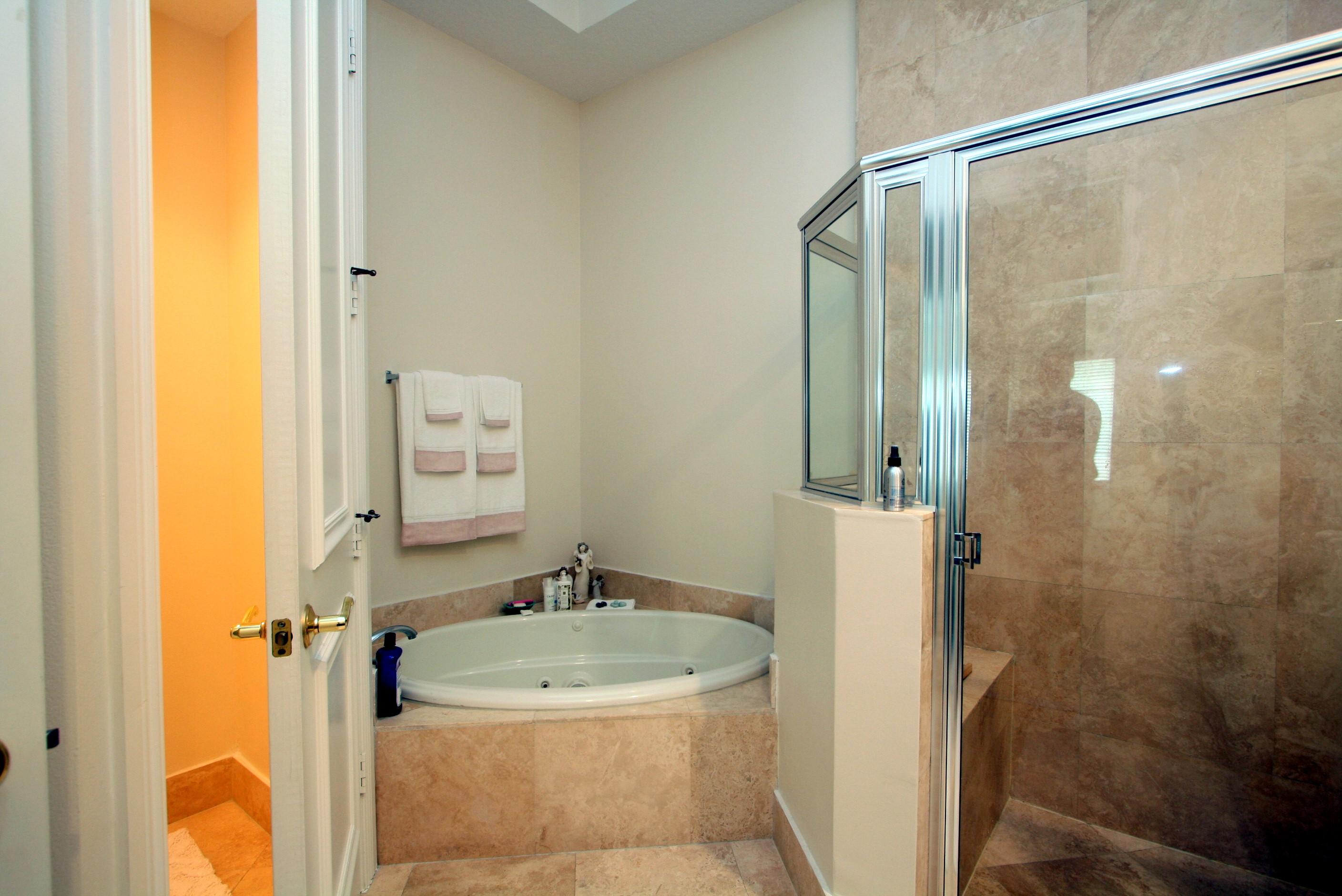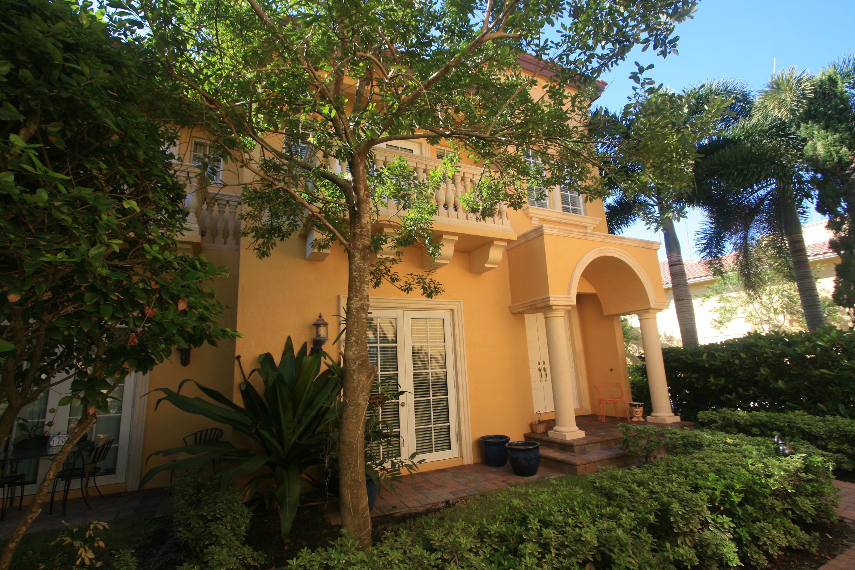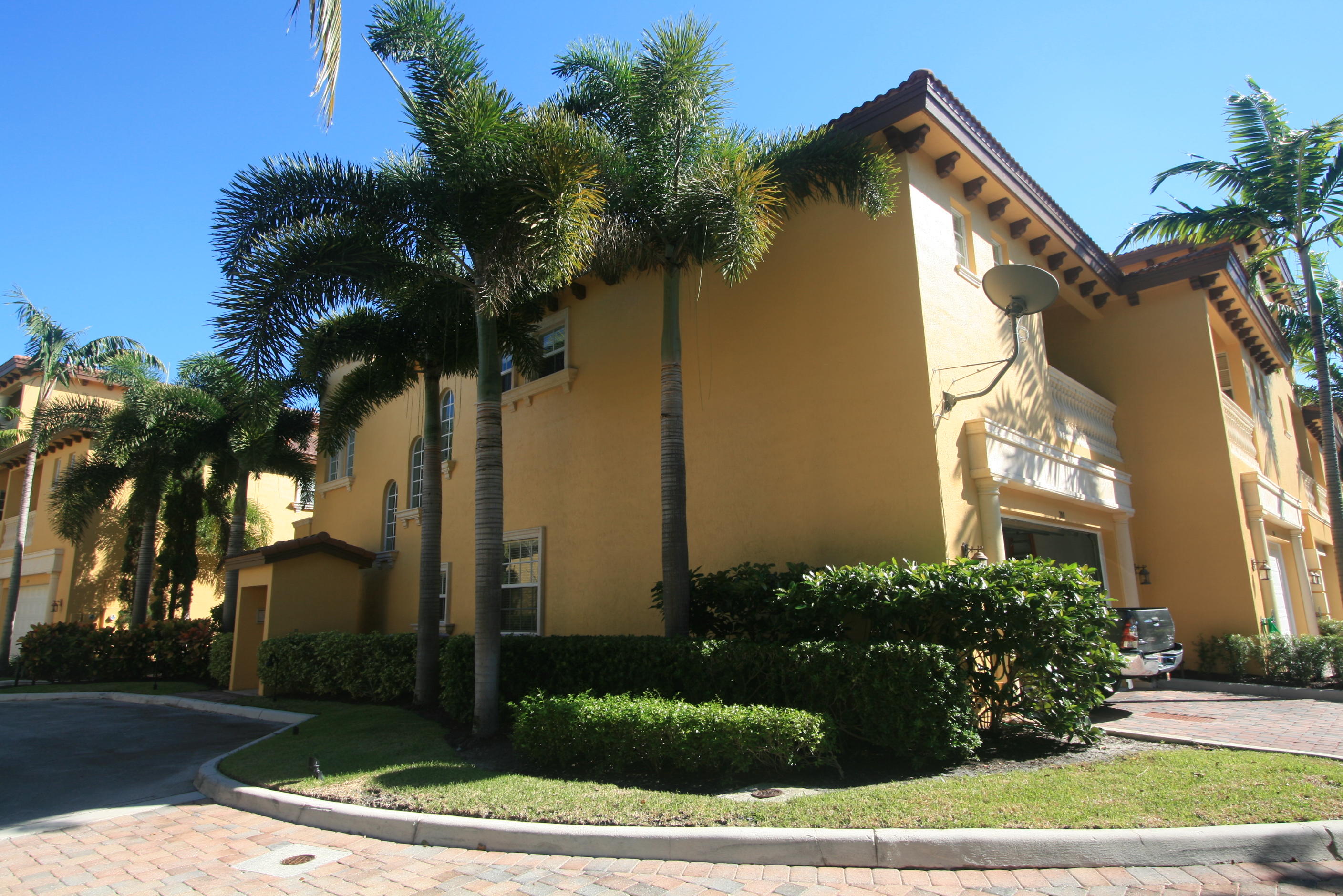 Beautiful Tuscan style 2 story townhome - Rare corner with extra windows (Impact) and light - 3 Bedrooms, 2.5 Baths - 2 balconies (1 off master bedroom and 1 on west side), 2 car garage. Gourmet kitchen with GE stainless steel appliances, gleaming granite. Saturnia marble floors in main areas, coffered ceilings in living room and tray ceiling for dining area, great details, wood stairs with wrought iron spindles. Townhomes are arranged around a manicured Mediterranean styled courtyards with charming paths, cypress trees and quiet pool area. Great East Boca location close to beach, shopping & restaurants.