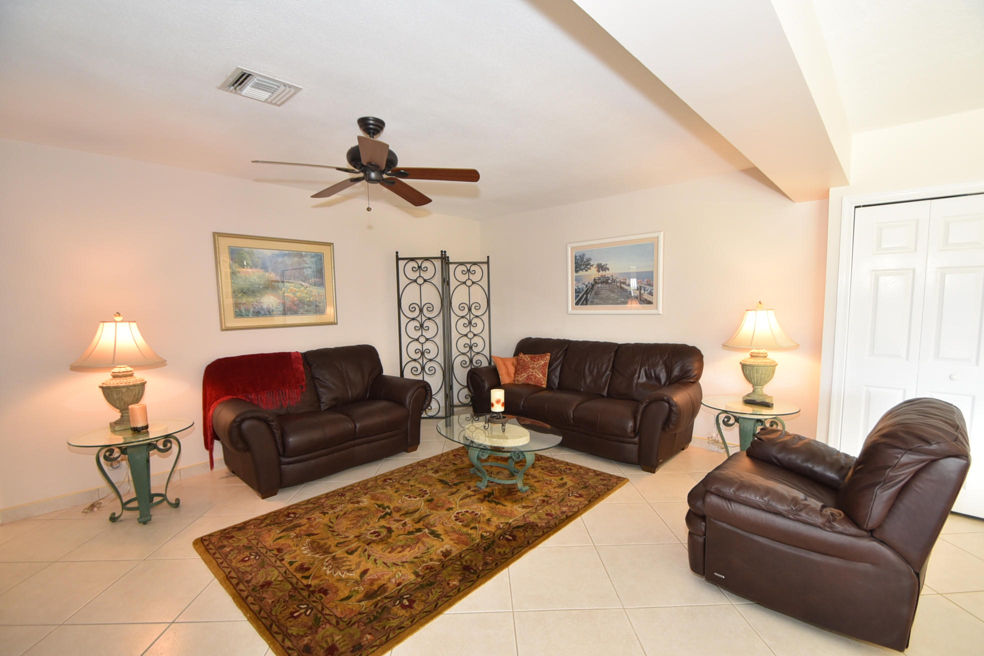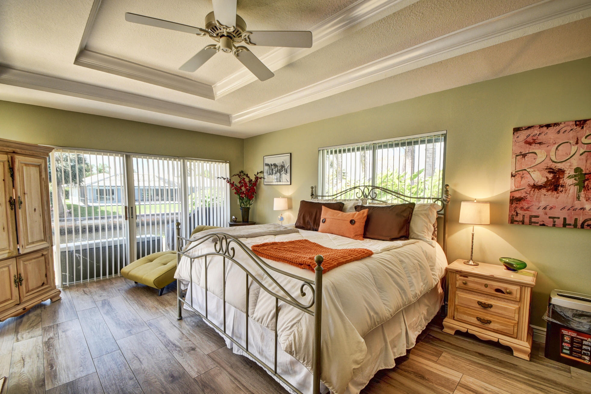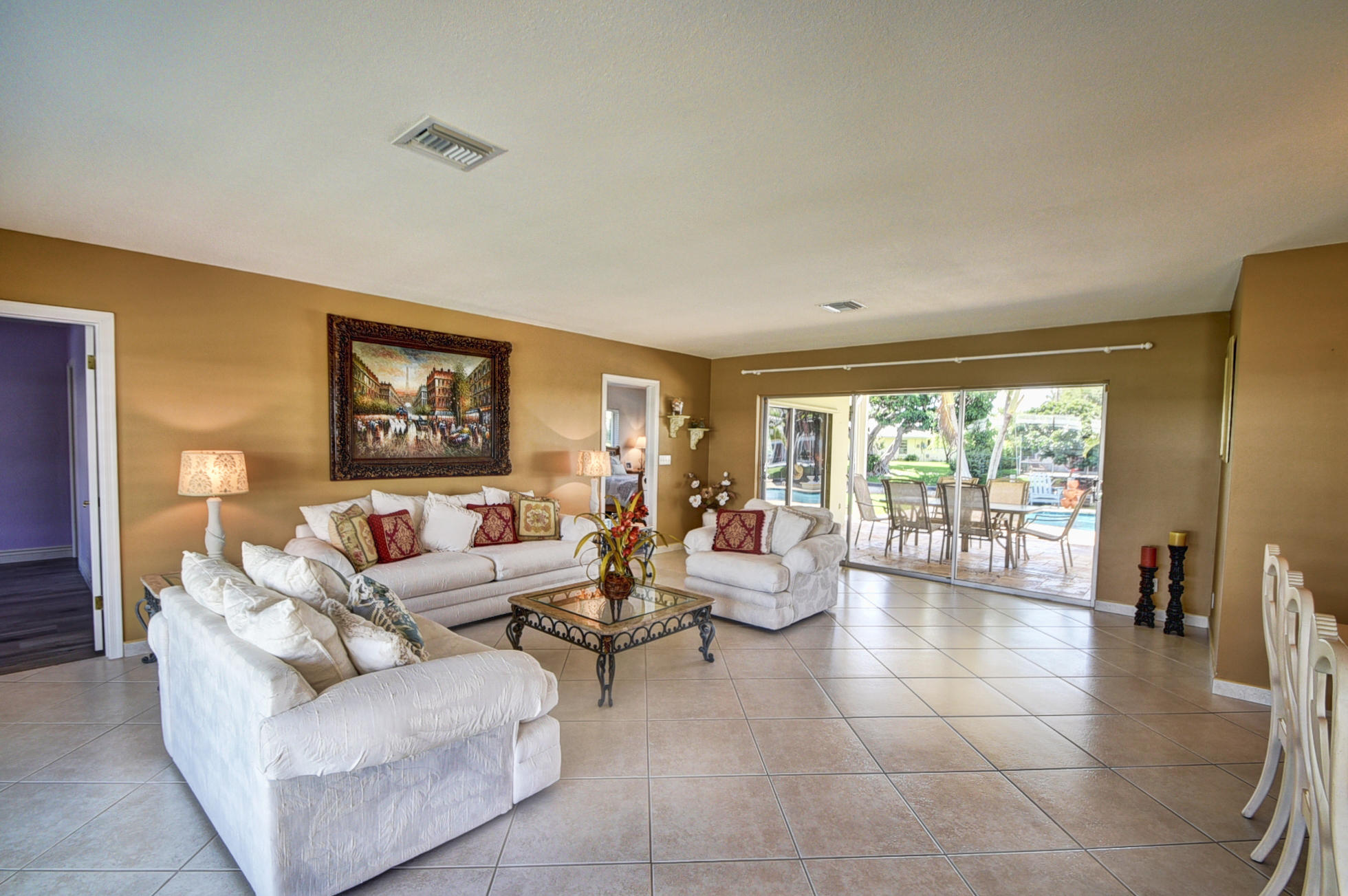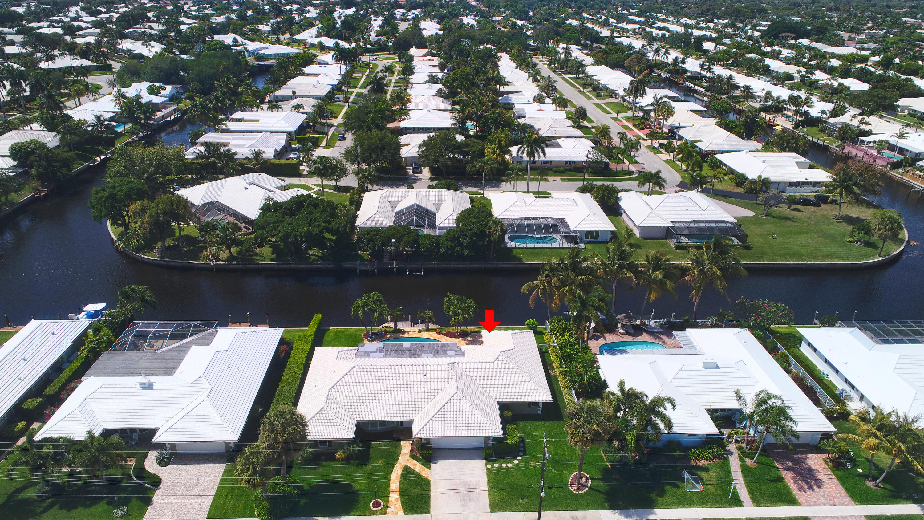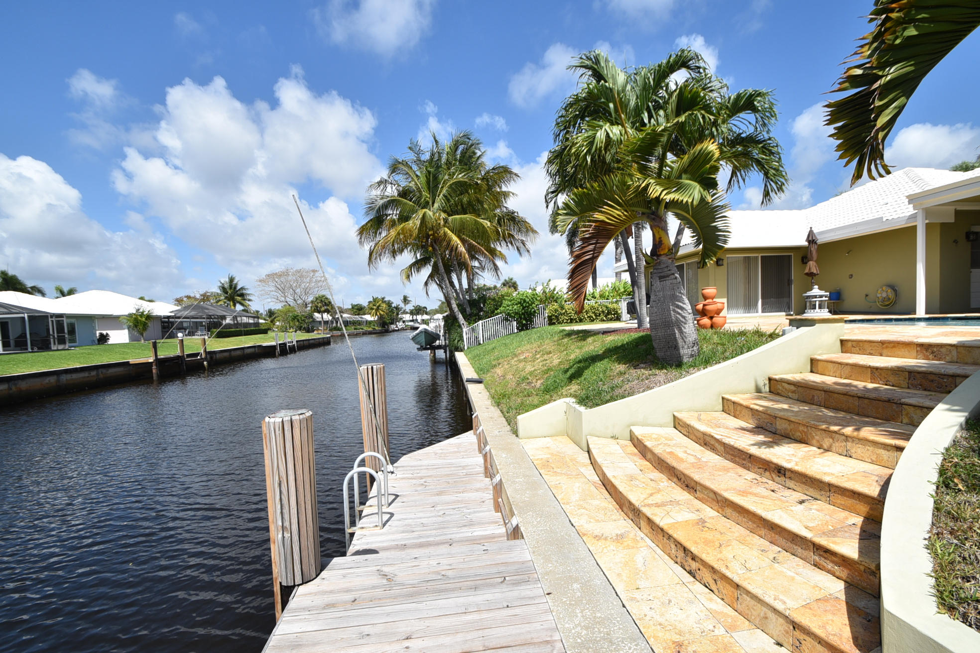 SPECTACULAR 3 bedroom,4 bath home on the El Rio Canal in the desired subdivision of Camino Gardens-VERY light,bright and airy-OVERSIZED lot-intracoastal and ocean access-two a/c units and boat dock only 6 months old-gorgeous 20'' porcelain tile on a diagonal in all the bedrooms-upgraded kitchen with granite countertops and solid wood cabinets-this home has BOTH a livingroom AND a family room-2 master suites-one of the largest homes in Camino Gardens with close to 2700 a/c square feet-south exposure on the pool-huge rooms-only 1.5 miles from the ocean-extremely LOW HOA fees of only $25 monthly-amazing travertine marble on the walkway and on the patio-the family rooms opens to the patio and pool which is perfect for entertaining-the best A rated schools-this stunning home won't last long